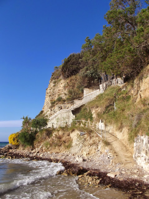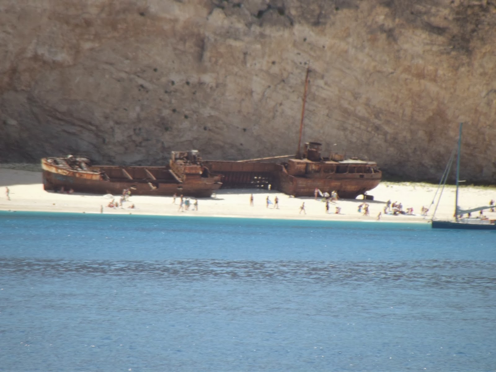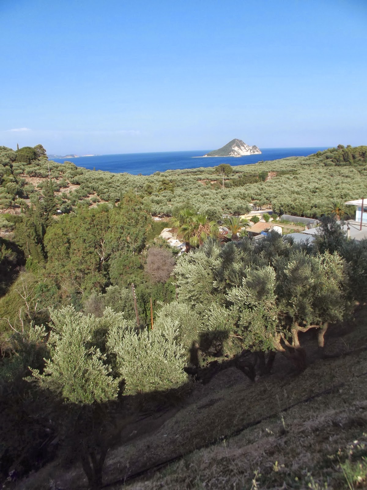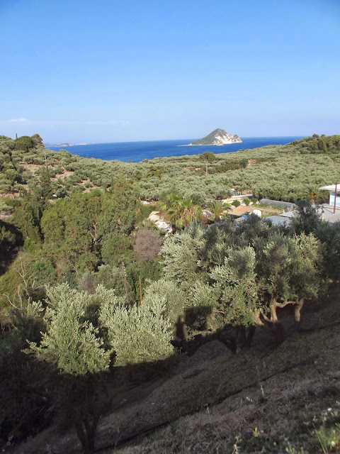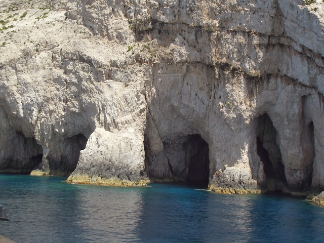 Tyle w skrócie możemy się dowiedzieć z Wikipedii, ja jak wypada na podróżnika amatora nie zadowoliłem się tylko drinkami, leżakami i plażą. Spędzając tydzień w miejscowości Tsivili, zwiedziłem całą wyspę lądem, morzem i jako że przyleciałem samolotem to można by powiedzieć że z powietrza też. Pogoda i plaże były piękne czego można być pewnym wędrując do Grecji. Wyspa ma dwa oblicza, jedno jest nizinne. Piękne plaże pełne turystów, kurorty, sklepy i restauracje. Z drugiej strony zaś strome góry, skały i plaże ukryte między klifami. Zakintos to bardzo żyzna wyspa gdzie można spotkać całą masę gajów oliwnych, a spacery po nich to czysta przyjemność. Nawet kiedy się zboczy z głównych dróg i człowiek się teoretycznie gubi jest cudownie, napisałem teoretycznie bo w praktyce człowiek się nigdy nie gubi, albo idzie inną drogą, albo bada nowe tereny. Tak że i ja badałem nowe ścieżki, a przynajmniej dla mnie nowe. Chodziłem, jeździłem skuterem, pływałem statkiem i wpław, no oczywiście też jadłem (wycieczka all inclusive), dużo jadłem, jadłem greckie specjały i nie tylko, piłem też jak się domyślacie. Jeżeli chodzi o zwiedzanie to sama wyspa nie oferuje za wiele zabytków, w 1953r wielkie trzęsienie ziemi uszkodziło 90% budynków. W mieście Zakintos znajduje się Katedra Św. Dionizosa i Kościół Św. Mikołaja. Katedra z zewnątrz wygląda dość zwyczajnie, ale w środku robi olbrzymie wrażenie, wszędzie na każdym cm można znaleźć kolorowe i piękne freski, ale nie zabytkami żyje to miasto. Zakintos miasto jest bardzo urokliwe, ma część pięknych kamienistych i część piaszczystych plaż. I oczywiście port który warto również odwiedzić. Tam można wykupić wycieczkę w koło wyspy, dzięki temu odwiedzić miejsca nie dostępne z lądu, jak zatoka wraku czy naturalne spa. Muszę przyznać że ta wycieczka mimo że zorganizowana najbardziej zapadła mi w pamięci i zrobiła na mnie ogromne wrażenie, bo krajobrazy były niesamowite. Kolejnym sposobem na zwiedzenie wyspy było wypożyczenie skutera, a że wsypa jest stosunkowo nie duża to udało mi się całą nizinną część zjeździć, szkoda że nie udało mi się wybrać w góry. Skuterem dotarłem za to do Keri, rybackiego miasteczka w najbardziej na południe wysuniętym punkcie wyspy u podnóża gór. Dopiero dzięki temu miejscu zobaczyłem co to znaczy piękno wyspy Zakintos. Kryształowo czysta woda, piękna kamienista plaża, góry i wreszcie mniej komercyjne miejsce. Do tego udało mi się odwiedzić masę mniejszych miejscowości i praktycznie wszystkie najpiękniejsze plaże Zakintos min. Bananowa Plaża czy Plaża Św. Mikołaja, gdzie na pobliskich skałach znajdowała się kapliczka którą wypatrzyłem wcześniej z łodzi i wiedziałem że muszę tam dotrzeć. Wyprawę na Zakintos muszę uznać za bardzo udaną, zresztą była to dla mnie bardzo dobra lekcja, już teraz wiem że mimo iż było genialnie to raczej nie wyruszę więcej z biura podróży, nie żebym narzekał na hotel czy organizację bo tutaj wszystko zapięte na ostatni guzik i mogę szczerze polecić organizatora czyli biuro podróży Itaka, ale jednak ja nie poszukuję leżenia na plaży a raczej przygód i aktywności.
