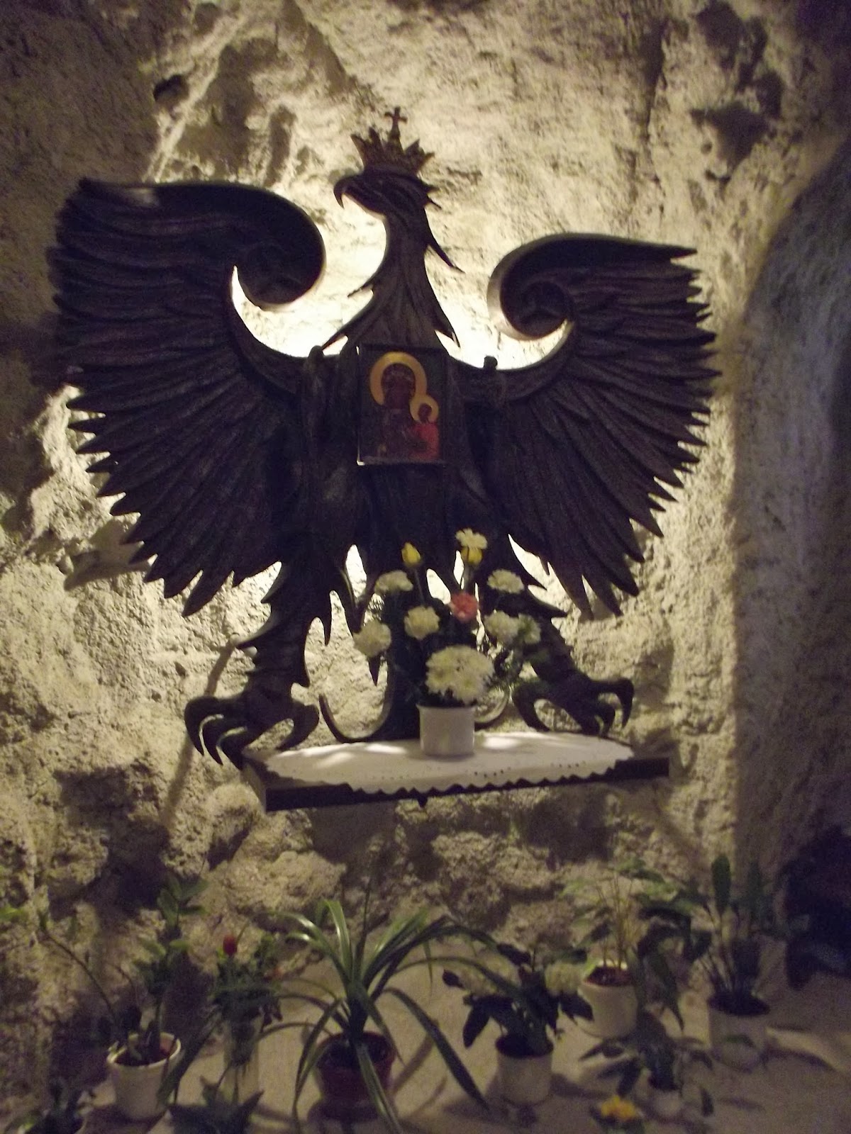 | Replika obrazu Matki Boskiej Częstochowskiej w kaplicy w skale. |