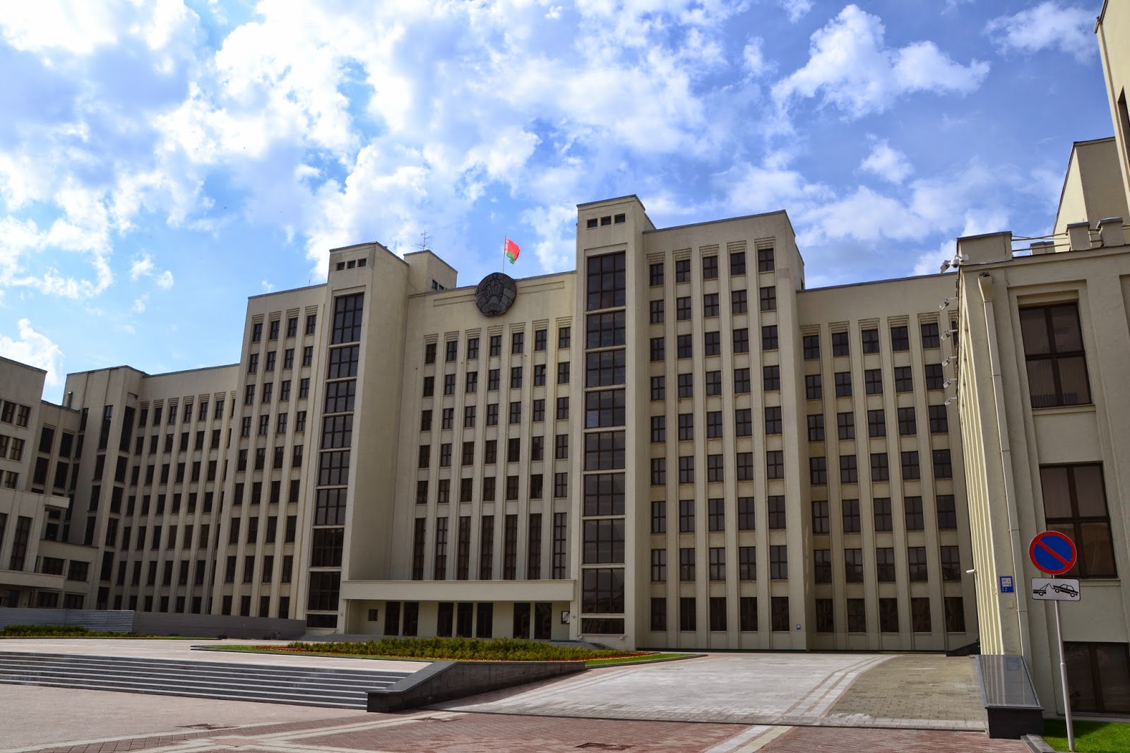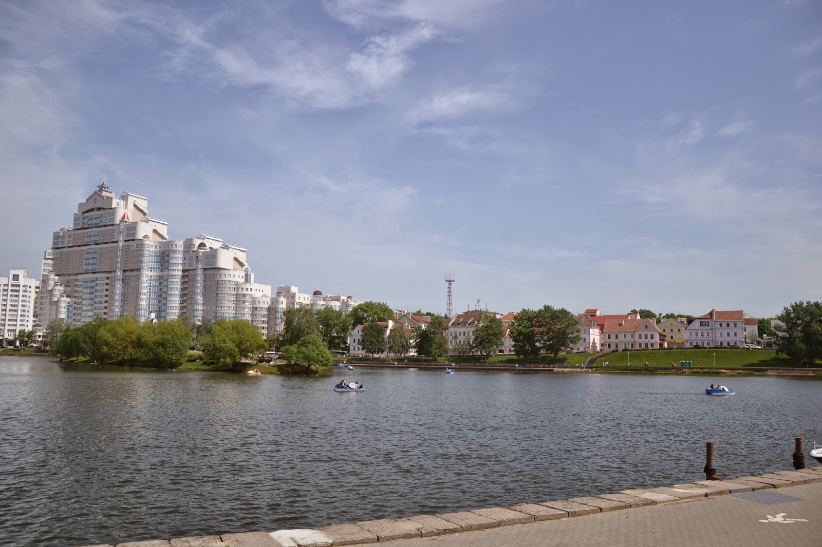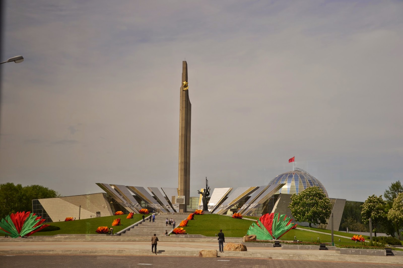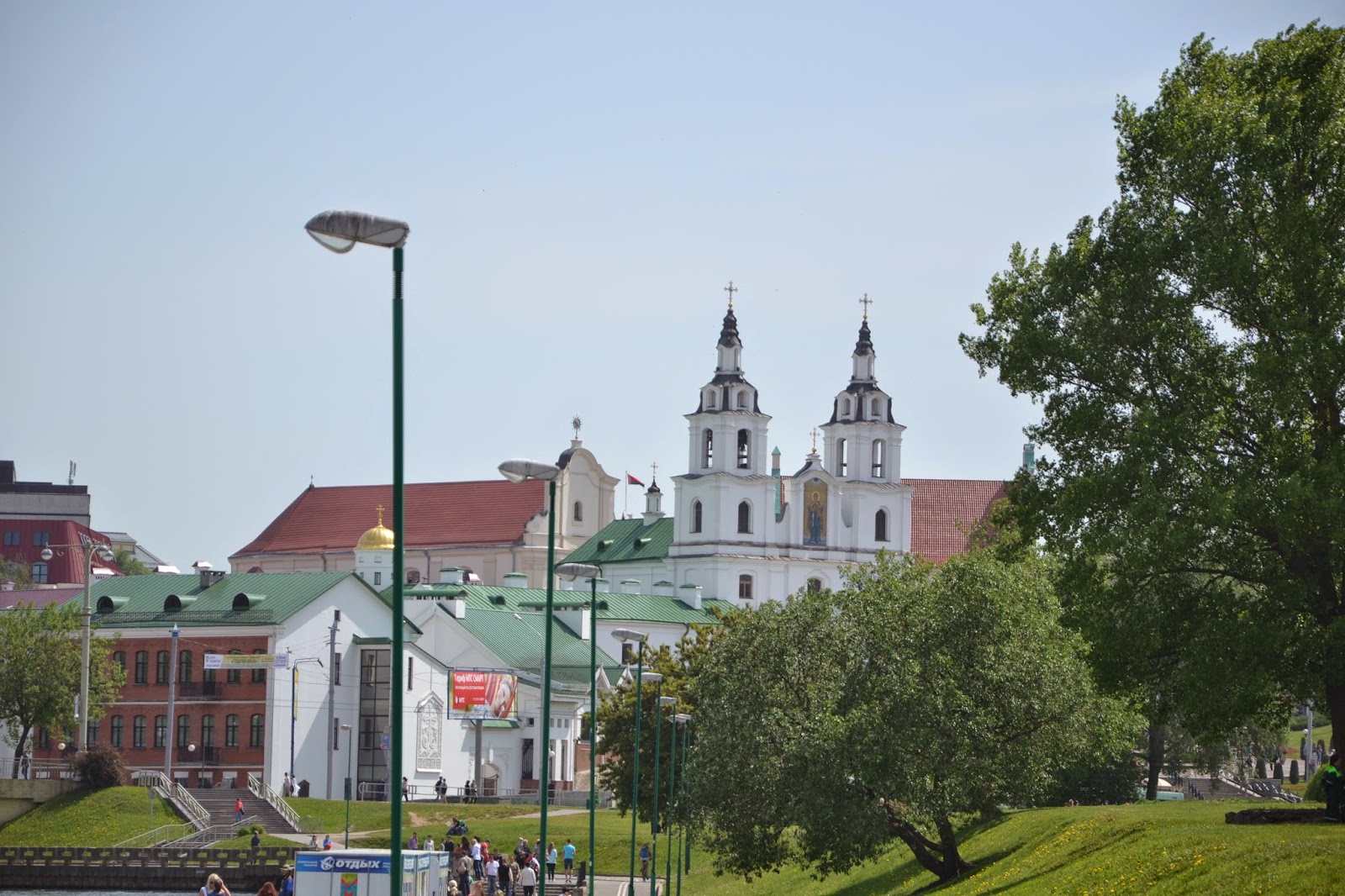 Drugiego dnia ruszyliśmy na zwiedzanie Mińska. O Białorusi można mieć różne zdania, ale przyznać trzeba że stolica prezentuje się naprawdę okazale. Czyste, bardzo zadbane ulice, odnowione, kolorowe budynki, sporo zieleni i bardzo dużo budów. Jeśli ktoś uważa że postkomunistyczne miasto musi być szare to zdecydowanie nie był w Mińsku, mimo że na każdym kroku widać insygnia wcześniejszego ustroju, z pomników straszą twarze komunistów, najważniejsza ulica Mińska nazwana jest imieniem Lenina, a prospektem Dzierżyńskiego nazwano ulicę prowadzącą przez całą stolicę do centrum. Ciężko jest mi powiedzieć jak wygląda miasto na co dzień, bo widać było że wszyscy żyją tam trwającą imprezą hokejową.
