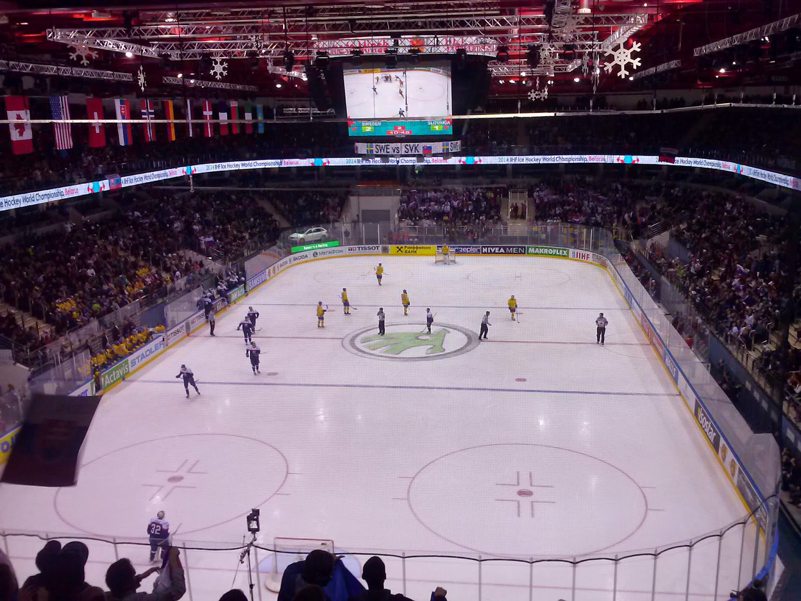 Jeszcze tego samego dnia mieliśmy pierwszy mecz Szwecja – Słowacja, który zakończył się wynikiem 3-1. Co ewidentnie nie przeszkadzało Słowakom żeby się świetnie bawić. Atmosfera na Czyżouka Arena (pojemność: 9600) była bardzo pozytywna, zdecydowanie przeważali Słowacy. My niestety dojechaliśmy na halę dopiero w połowie drugiej tercji, po meczu ruszyliśmy na juwenalia, a potem w hostelu imprezowaliśmy do białego rana.