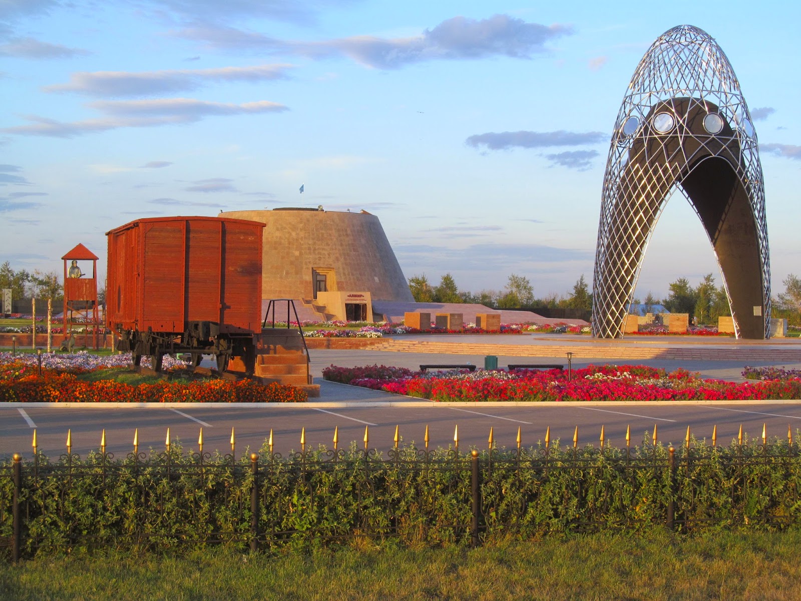 Nie byłbym sobą, gdybym do wpisu nie wprowadził „wątku historycznego”. Kilka dni temu trafiłem w bibliotece na książkę „Kazachstan – wspólny dom wielu narodów”. Autorem tej propagandowej pozycji jest sam prezydent Nursułtan Nazarbajew. Rządzone przez niego państwo zamieszkiwane jest przez ponad 130 narodów i grup etnicznych. Narodowy tygiel kształtował się przez lata na skutek migracji ludności oraz stalinowskiej polityki przymusowych przesiedleń. Największe państwo Azji Środkowej było bardzo ważnym elementem sowieckiego systemu GUŁAG. Zsyłano tu tysiące ludzi wielu narodowości, bo było daleko od Moskwy i linii frontu, a także panowały bardzo ciężkie warunki pogodowe (upalne lato i mroźna zima). W latach 30. i 40. ubiegłego wieku do Kazachstanu deportowano ok. 75 tysięcy Polaków. Podczas naszej zeszłorocznej podróży śladami pomorskich zesłańców odwiedziliśmy m.in. muzeum Karagandyjskiego Łagru oraz miejsce pamięci Akmolińskiego Obozu Żon Zdrajców Ojczyzny (ALŻIR) w Malinówce pod Astaną. Symboliczne znicze zapaliliśmy na obozowym cmentarzu w Dolince pod Karagandą oraz pod ustawioną przez polską ambasadę tablicą: „Pamięci Polek– ofiar represji politycznych w ZSRR więzionych w obozie pracy ALŻIR w latach 1937-1953”.