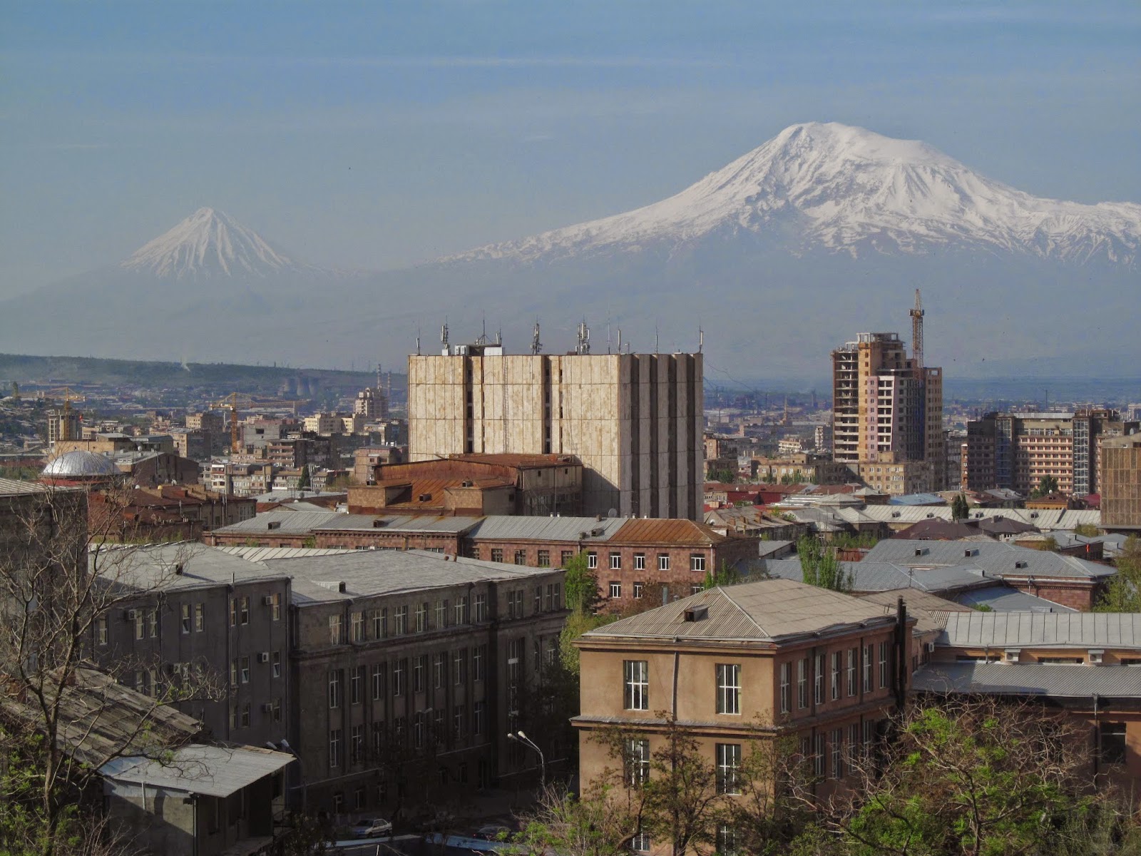 | Udało się. Godzina 8.30. Wierzchołki Araratu widoczne ponad ormiańską stolicą. |