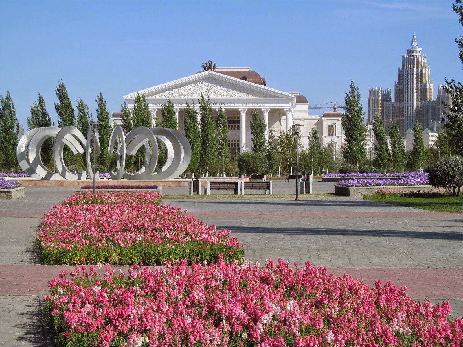 | Astańskie stylizacje – nowoczesna „grecka opera” i „pałac kultury”. |