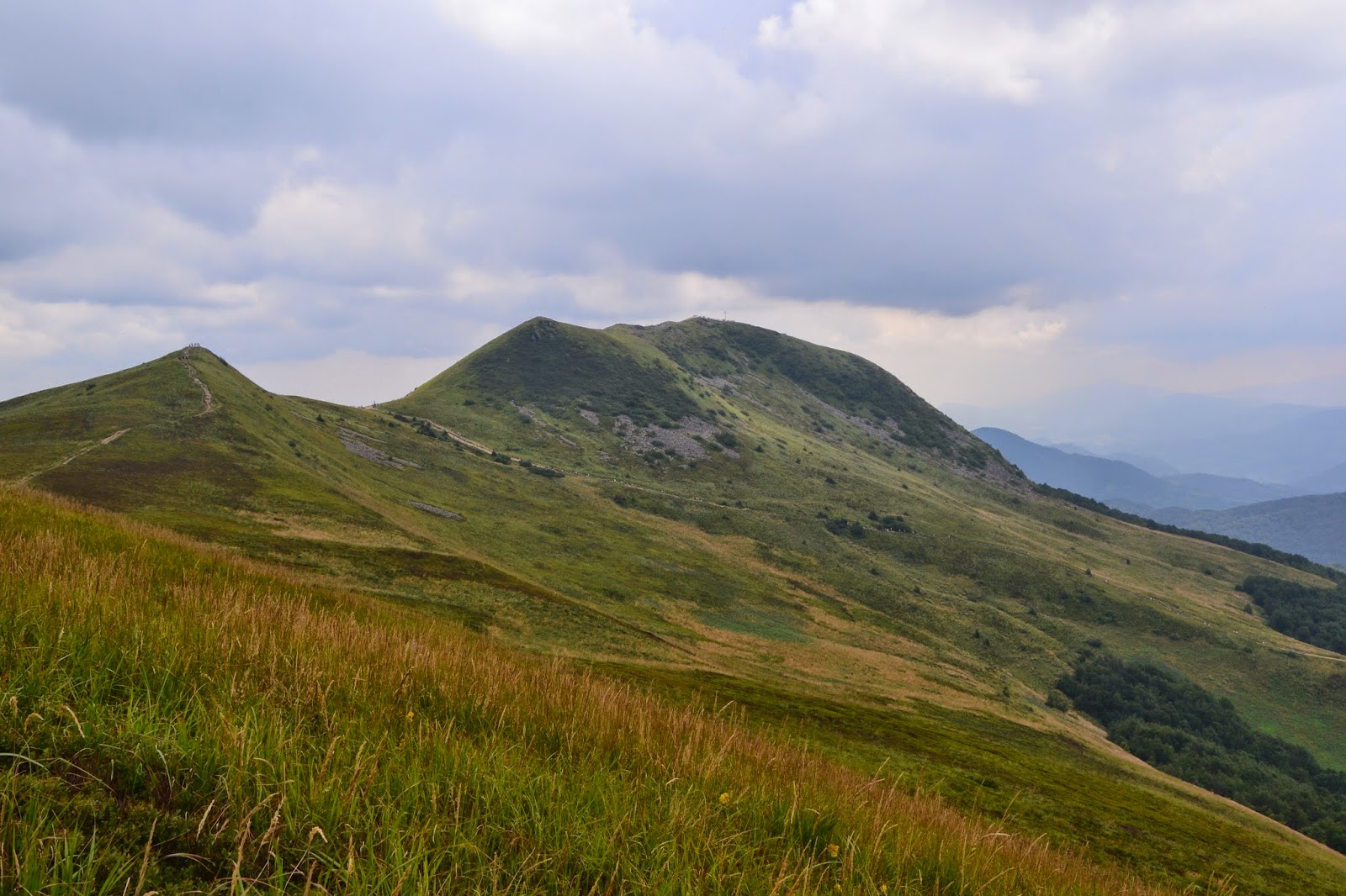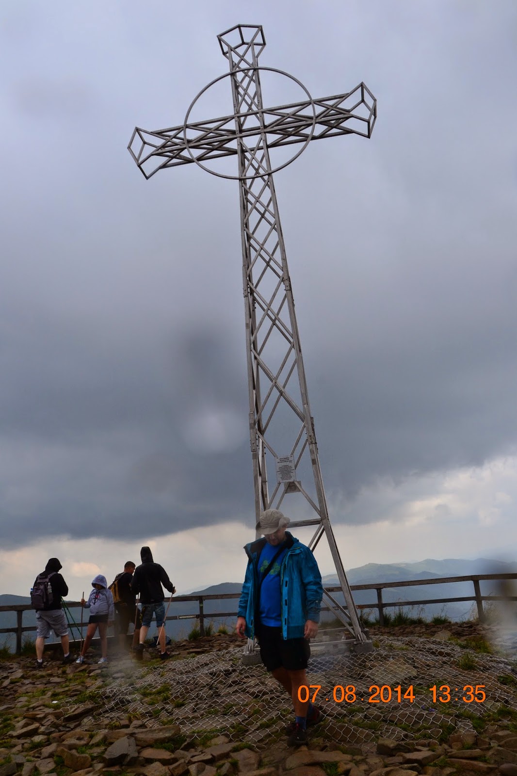 Przy początku marszu pogoda była idealna, świeciło słońce, chociaż nie było upału, a że pierwsze kilometry prowadziły lasem, to byliśmy przyjemnie osłonięci, jedynym minusem była rzeka ludzi idąca w tym samym kierunku co my. Gdy wyszliśmy na szeroki wierch, okazała nam się piękna panorama, ale i usłyszeliśmy w oddali odgłosy nadchodzącej burzy. Przyspieszyliśmy tępa, z nadzieją że burza przejdzie bokiem. Niestety deszcz dopadł nas na przełęczy pod Tarnicą, ale nie wystraszyło nas to i wspięliśmy się na szczyt. Pogoda nas nie oszczędzała, widoczność była słaba, ale szczyt zaliczony.