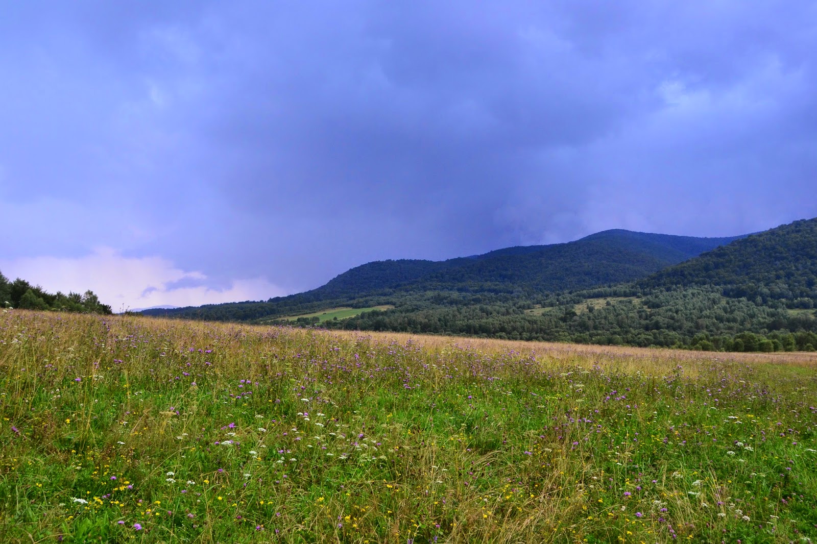 W drogę powrotną ruszyliśmy niebieskim szlakiem do miejscowości Wołosate. Droga przyznam szczerze była raczej przeciętna pod względem widokowym, a marsz był raczej uciążliwy, w deszczu, błocie, z ciężkimi plecakami. Przed samym Wołosatym oberwała się chmura i rozszalała burza, a pioruny waliły dosłownie obok nas. Mieliśmy nadzieję schronić się w schronisku „Pod Tarnicą”, które figurowało w mojej mapie, a w praktyce okazało się że już od ponad roku nie istnieje. Znaleźliśmy na szczęście barek (i to chyba duże słowo) w którym udało nam się schronić i napić ciepłej kawy. Gdy trochę przeschnęliśmy i przestało padać, podjęliśmy decyzję że ruszamy nad jezioro Solińskie.