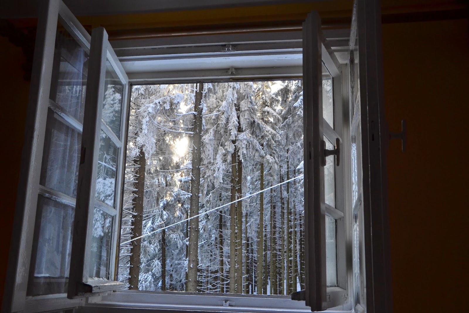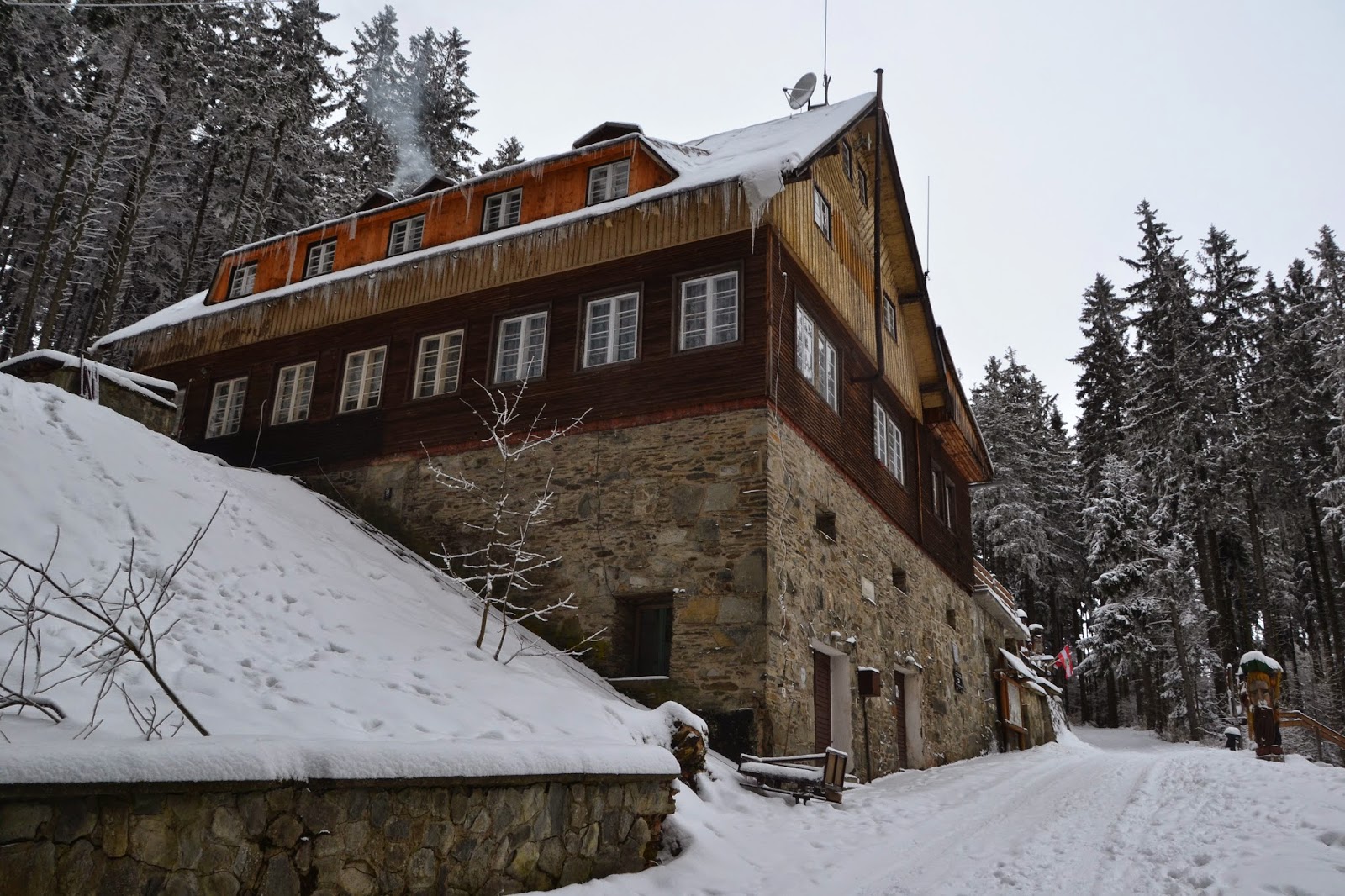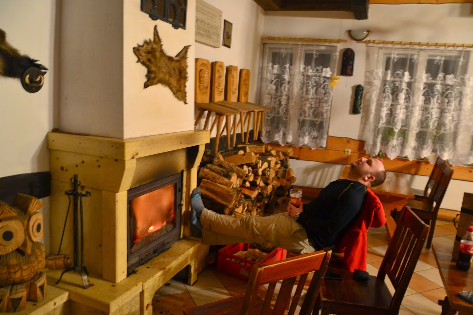 Po powrocie do schroniska okazało się że jesteśmy jedynymi gośćmi na tą noc, co miało dobre i złe strony, ale na pewno bardzo dobrą stroną było to że mogliśmy cały wieczór bezkarnie okupować kominek. To był prawdziwy relaks, góry, kominek, piwko i muzyka w stylu kraina łagodności. Obiad choć nie należał do najtańszych mogę zdecydowanie polecić, zamówiliśmy placki ziemniaczane z sosem węgierskim (17zł) i zestaw z dewolajem (23zł), oba dania były pyszne i naprawdę solidne. Jeśli chodzi o warunki noclegowe to typowo schroniskowe czyli skromnie, ale czysto. Cena noclegu to 35zł w tym pościel (z której nie można zrezygnować), niestety zniżki PTTK nie są uwzględniane.
