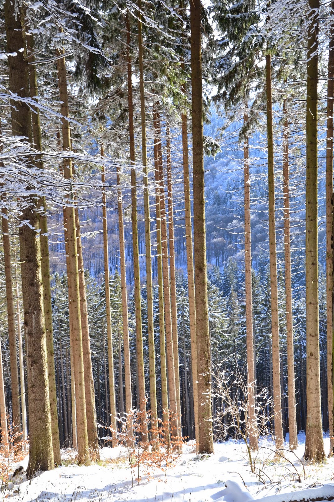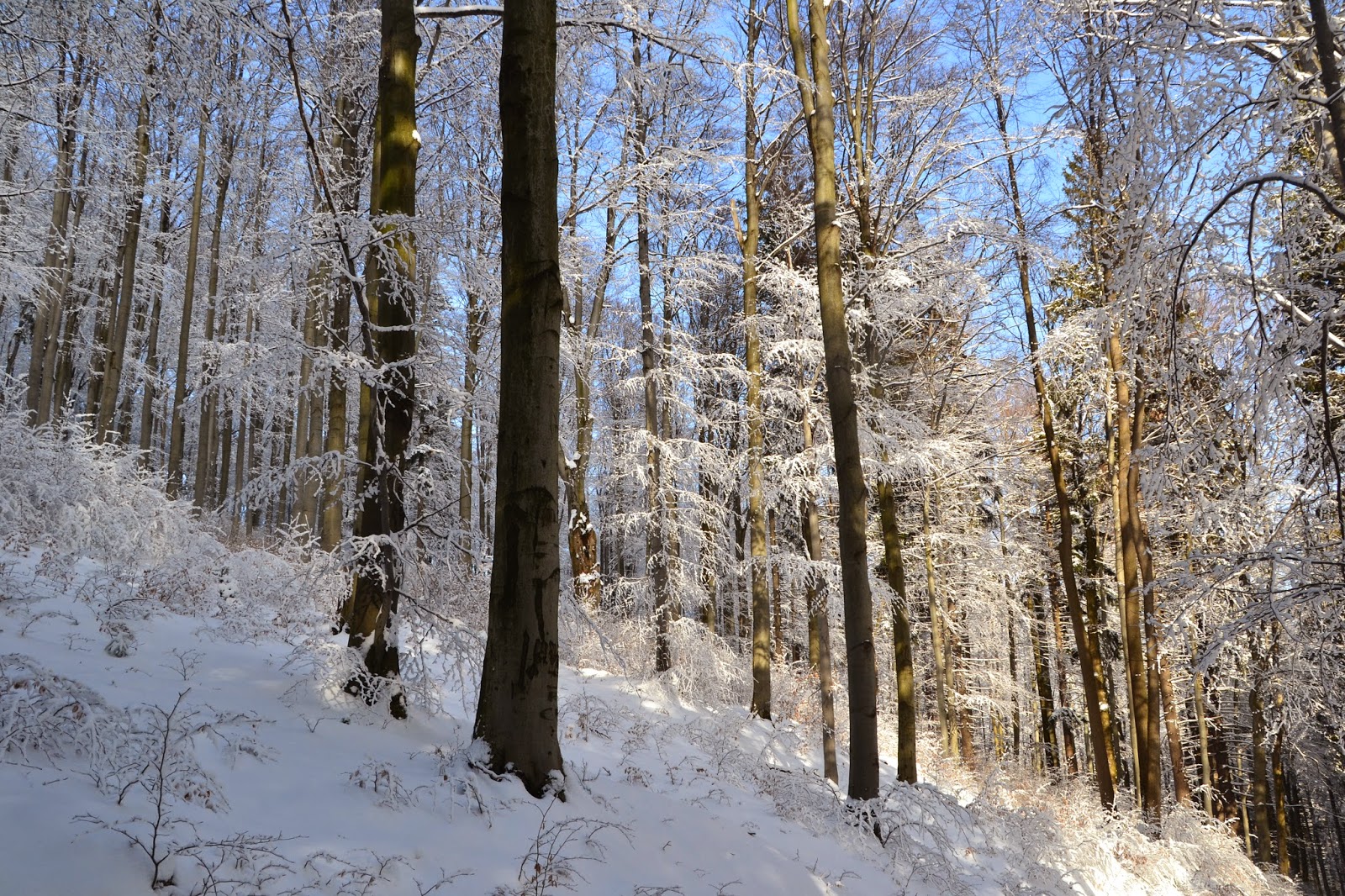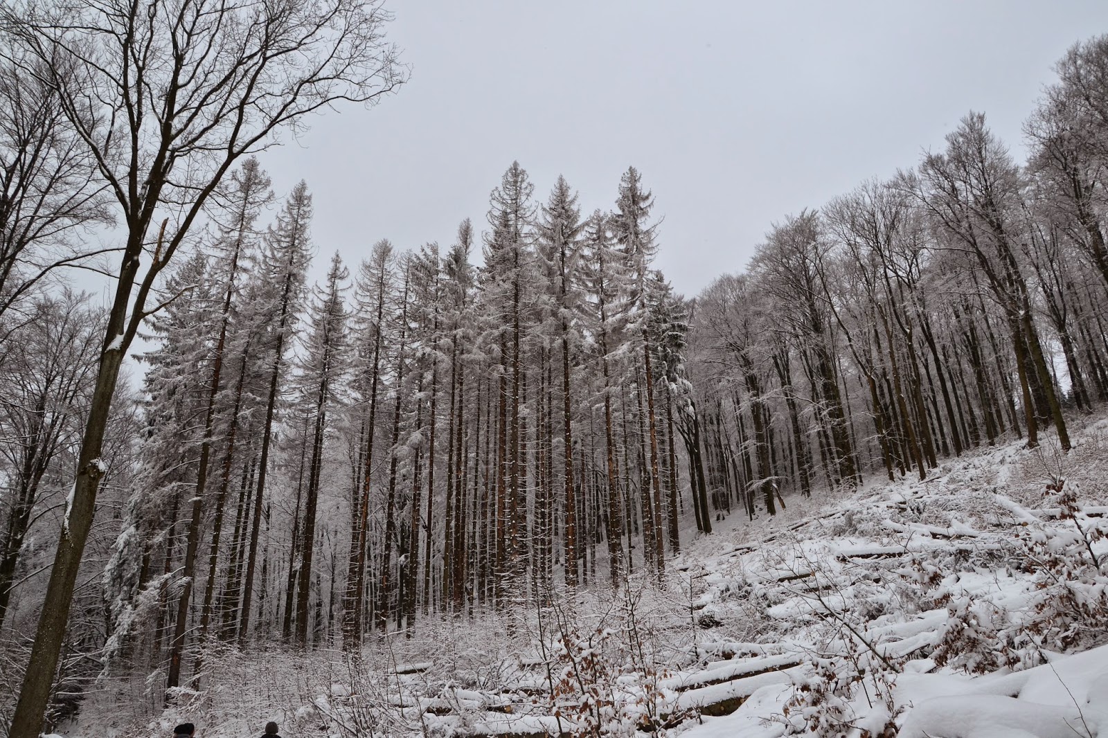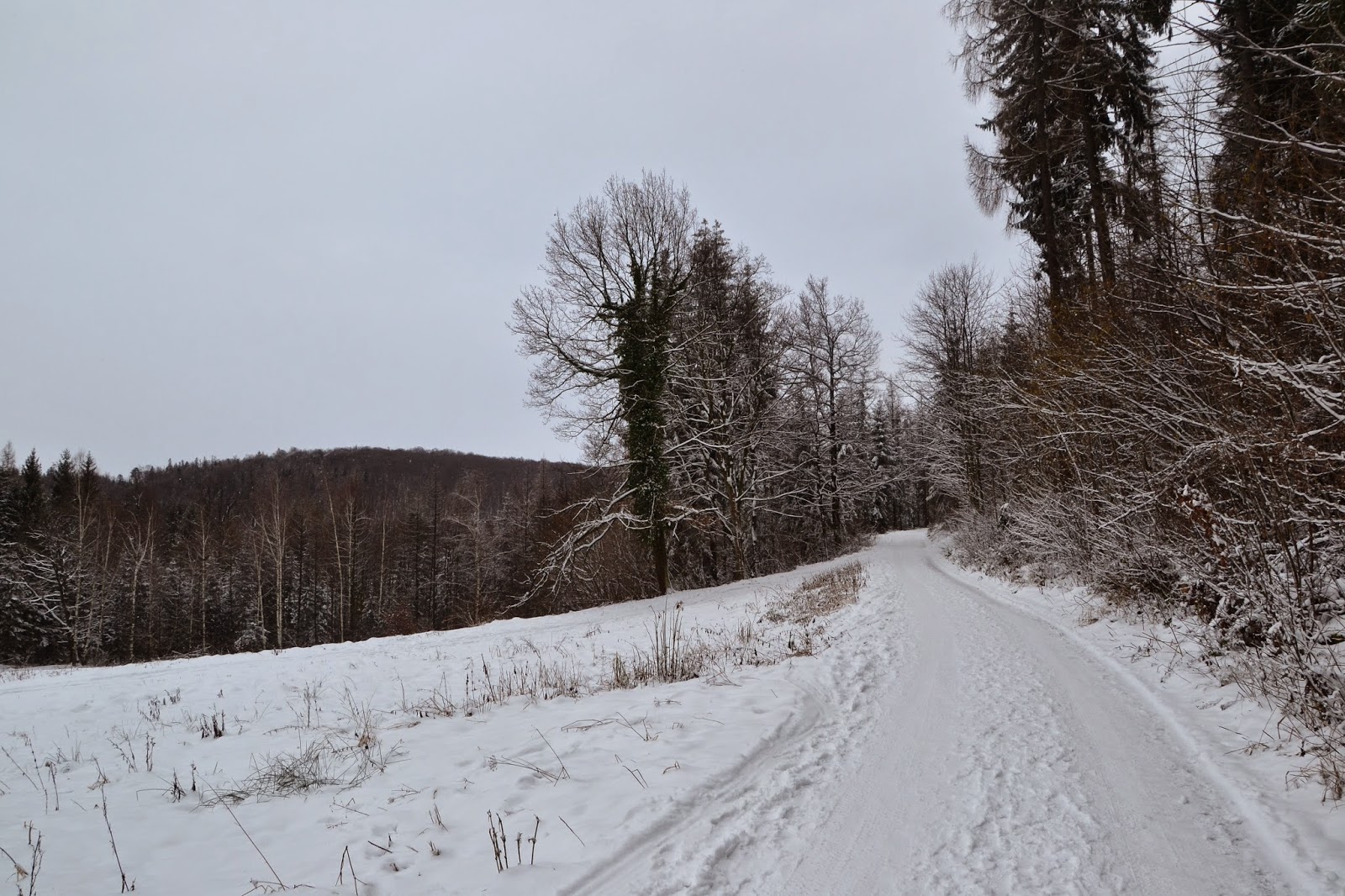 Od naszego parkingu na szlaku trzeba było podejść kawałek, ale nie było to problemem ponieważ były oznaczenia którędy do żółtego szlaku, a nim prosta droga do schroniska „Pod Biskupią Kopą”, tzn. prosta pod górę, na szczęście bez wariactw bo przyznam się że po nocny dyżurze w pracy nie byłem gotowy na wyrypę. Szliśmy powoli, ciesząc się piękną zimową aurą i co jakiś czas zatrzymując się żeby porobić zdjęcia, widoku gór nie za bardzo można było uświadczyć ponieważ szlak jest mocno zalesiony, ale my i tak byliśmy zachwyceni.