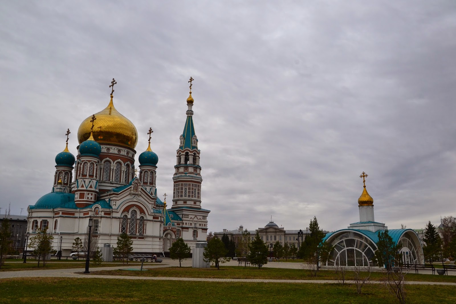 Chyba jedyny zabytkowy budynek w Omsku, czyli Cerkiew.