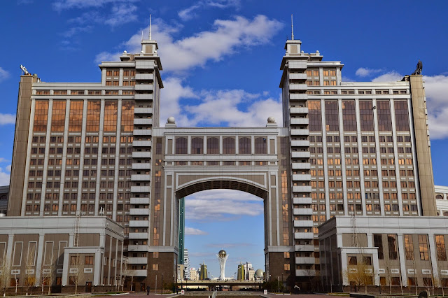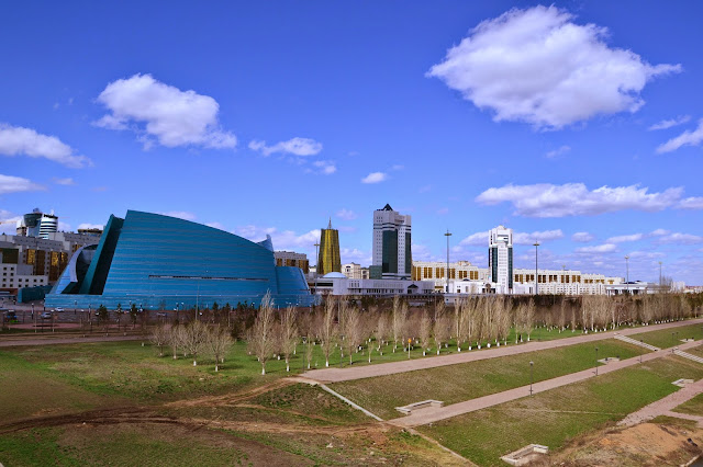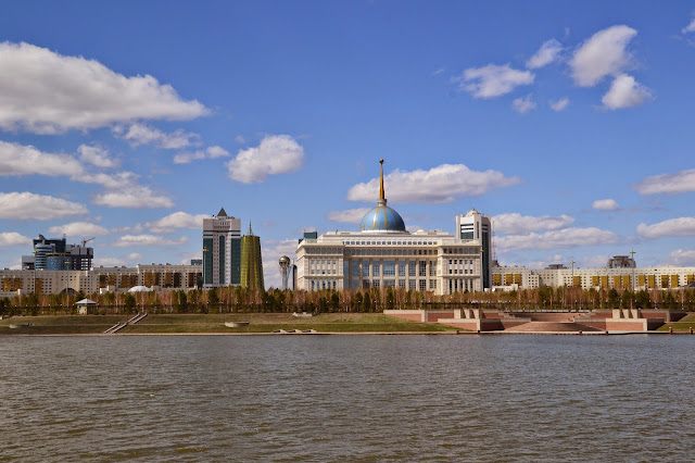 Do stolicy Kazachstanu dotarłem po 2 w nocy, skoczyłem tylko na dworzec kupić bilet do Otar, bo w międzyczasie podjąłem decyzję że muszę odpuścić drugą stolicę czyli Ałmaaty. Dzięki pomocy Dominika, w hostelu wiedzieli że będę późno, a raczej mieli wiedzieć, ale to że nie są zorganizowani to już nie moja broszka. Dworzec znajduje się daleko od centrum, jakieś 10km, a hostel miałem w samym centrum, można by powiedzieć że prezydent był moim sąsiadem. Nie próbowałem nawet się wygłupiać iść z buta czy kombinować z autobusem, a od razu poszedłem na taksówkę. Po krótkich targach, zbiłem cenę do połowy i stała się do przyjęcia (25zł) pojechali. Na miejscu jeszcze z godzinę szukałem swojego hostelu, z pomocą kolejnego taksówkarza udało się. Padnięty marzyłem tylko o łóżku, ale pamiętałem o budziku bo miałem tylko jeden dzień na Astanę, co się później okazało jeden dzień to idealne rozwiązanie.