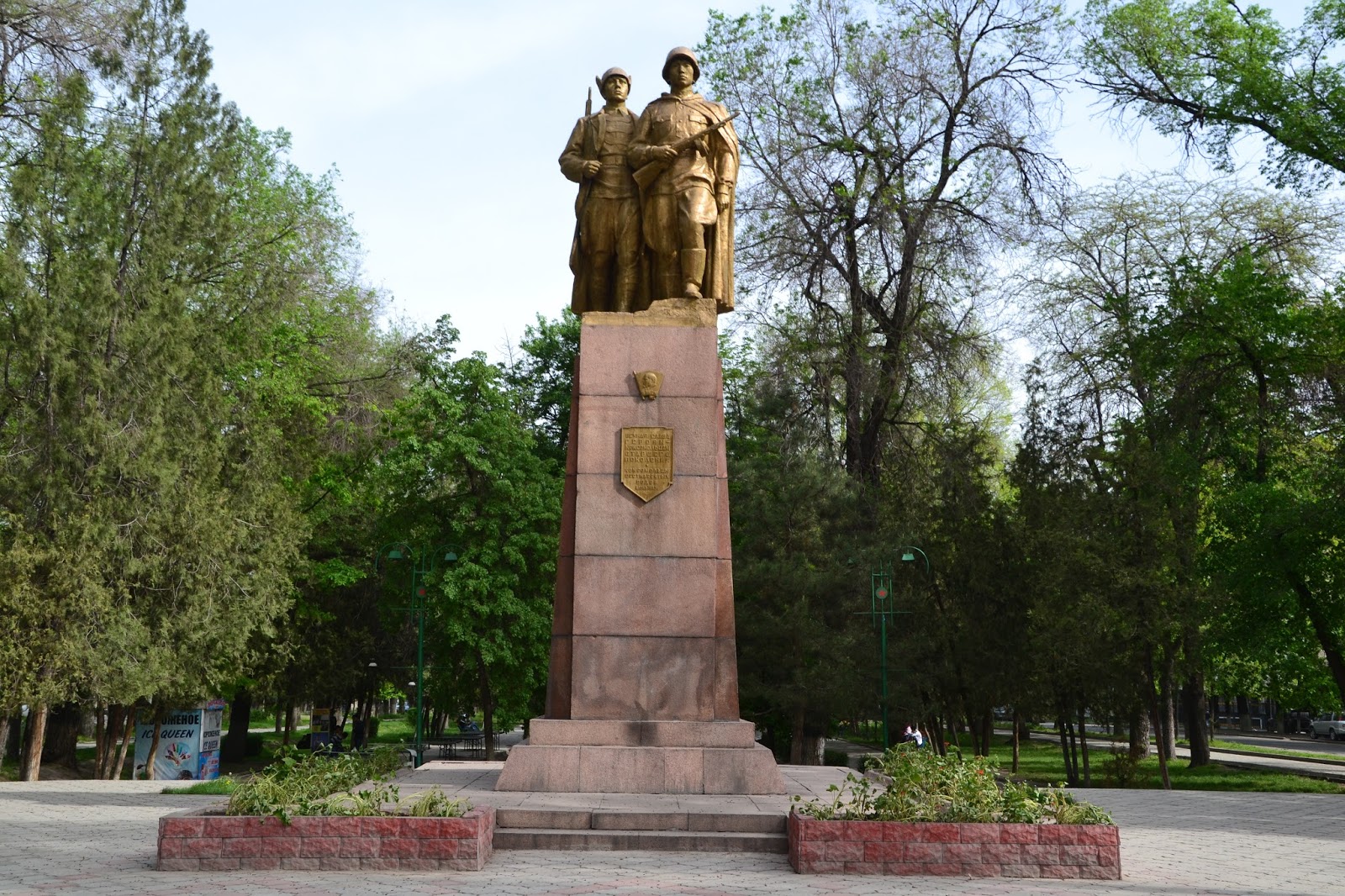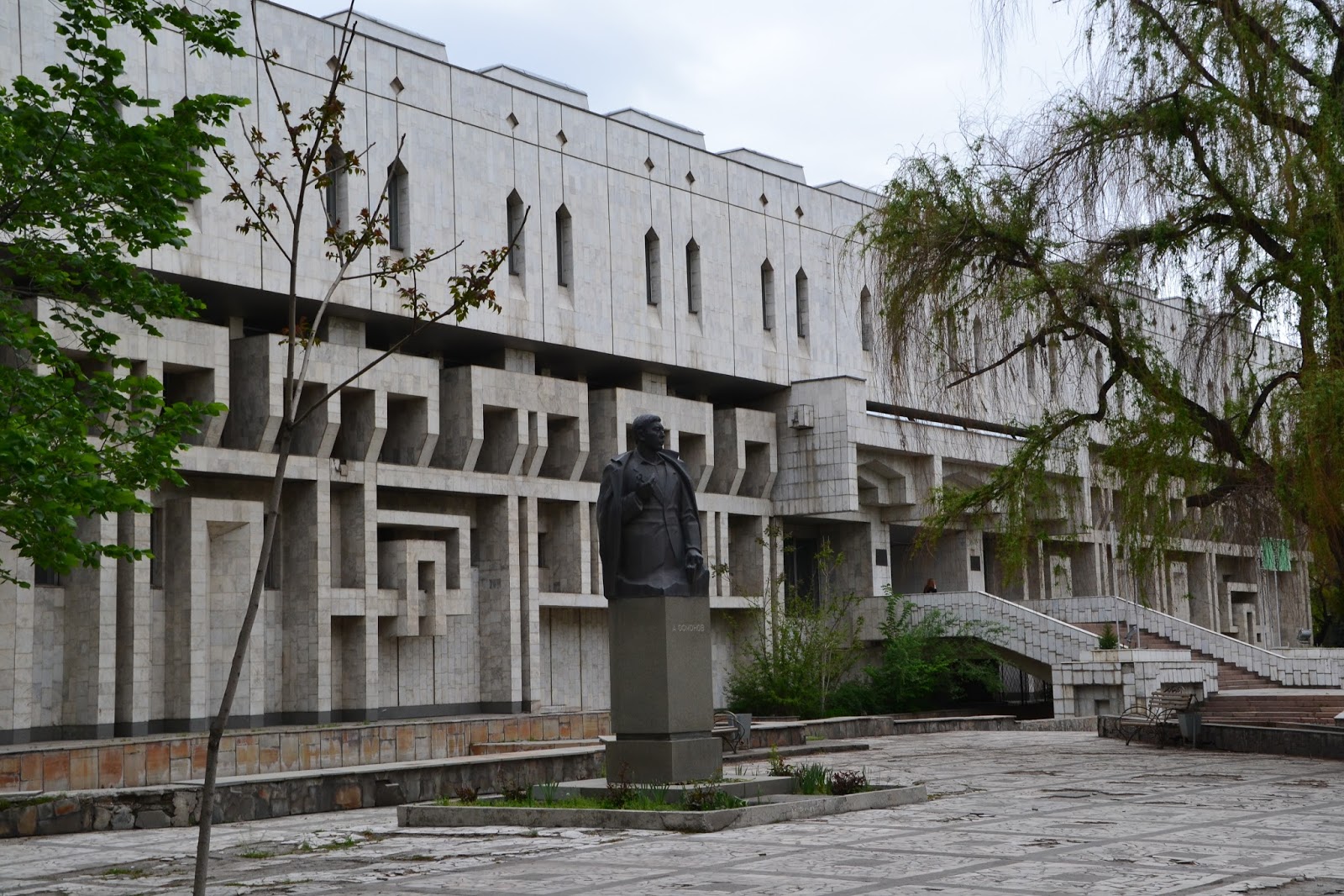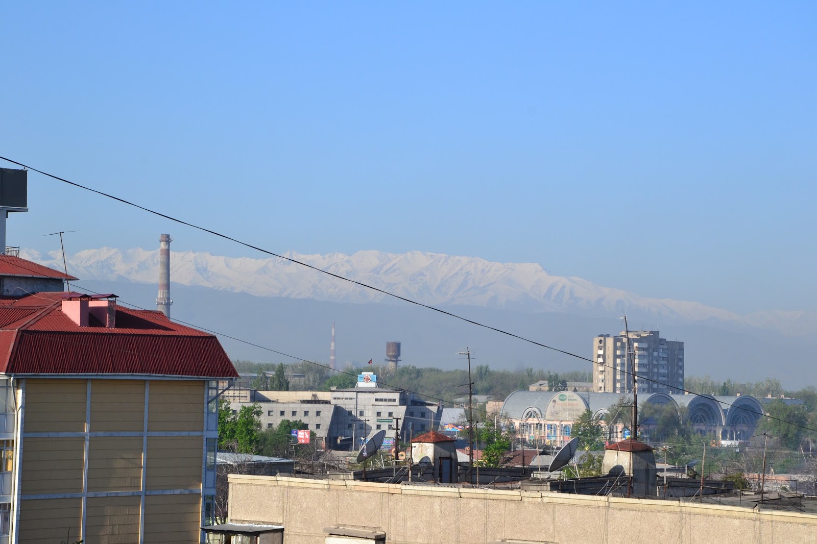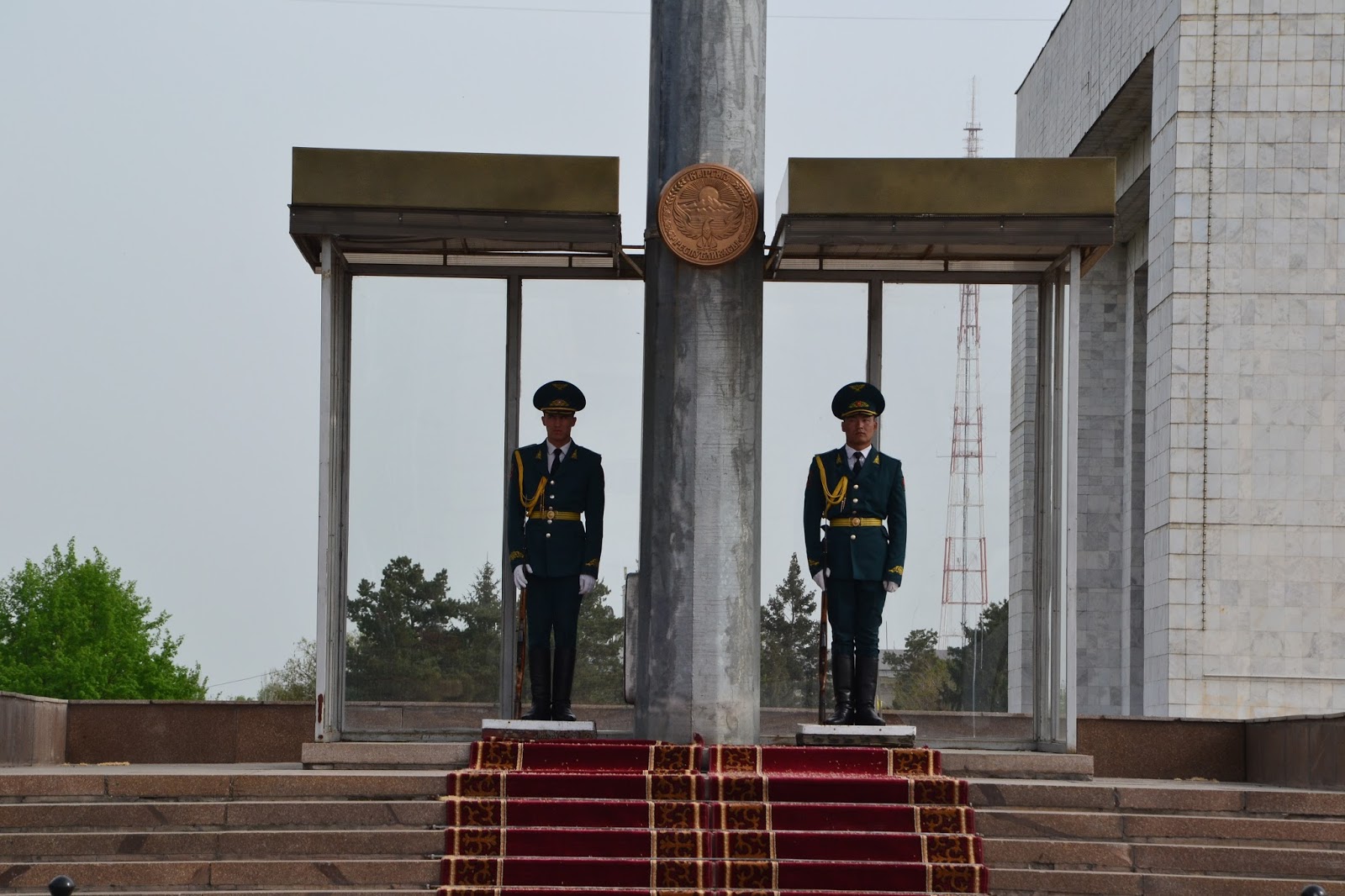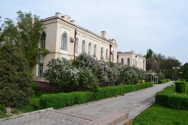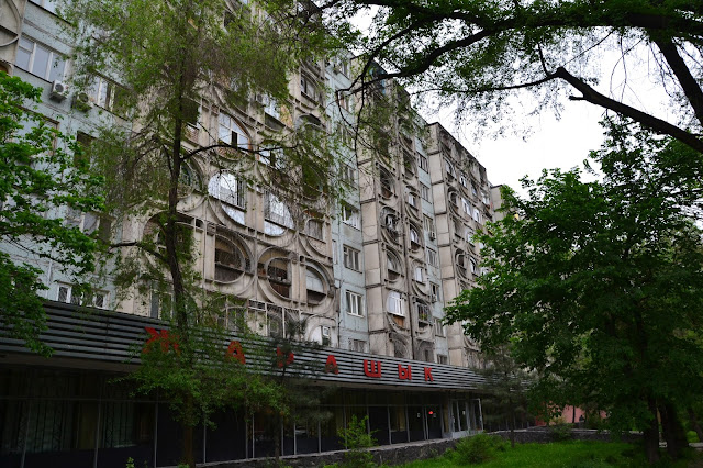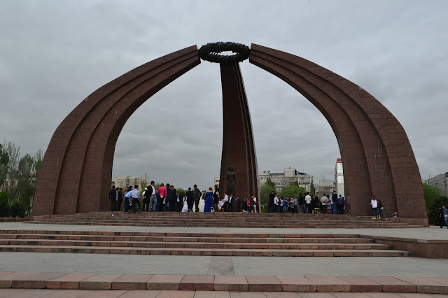 Lokum było dość przerażające na pierwszy rzut oka, szare, mroczne, trochę obskurne i jakieś obce, ale w sumie najtańsze jakie znalazłem (450som), więc jakiś plus widziałem. Później się przyzwyczaiłem i oswoiłem, więc było nawet przyjemnie. Po rozmowie z administratorem, okazało się że wszystko działa (domofon, winda) tylko jest awaria prądu co mnie znowu przeraziło, bo cholera wie ile tu na tym końcu świata może taką awaria trwać. Na szczęście okazało się że za parę minut naprawili i wsio robotało, łącznie z Wi-Fi. Wypiłem kawę, i chciałem ruszać do ambasady Tadżyckiej, ale koleżanka z którą akurat rozmawiałem uświadomiła mnie że jest niedziela, co było dla mnie strasznym zaskoczeniem. No nic. Nie pozostało mi nic innego jak ruszyć w miasto. Jako że było wcześnie to wyszło na to że cały dzień kręciłem się po mieście. Spacerowałem po licznych parkach, popijałem kawkę w kawiarni czy jadłem obiad na stołówce, których w Biszkeku jest sporo i można za bardzo rozsądną cenę (ok. 10zł) zjeść porządny dwudaniowy obiad i kompot, czaj, czy kawa, co kto lubi, raj dla globtrotera.