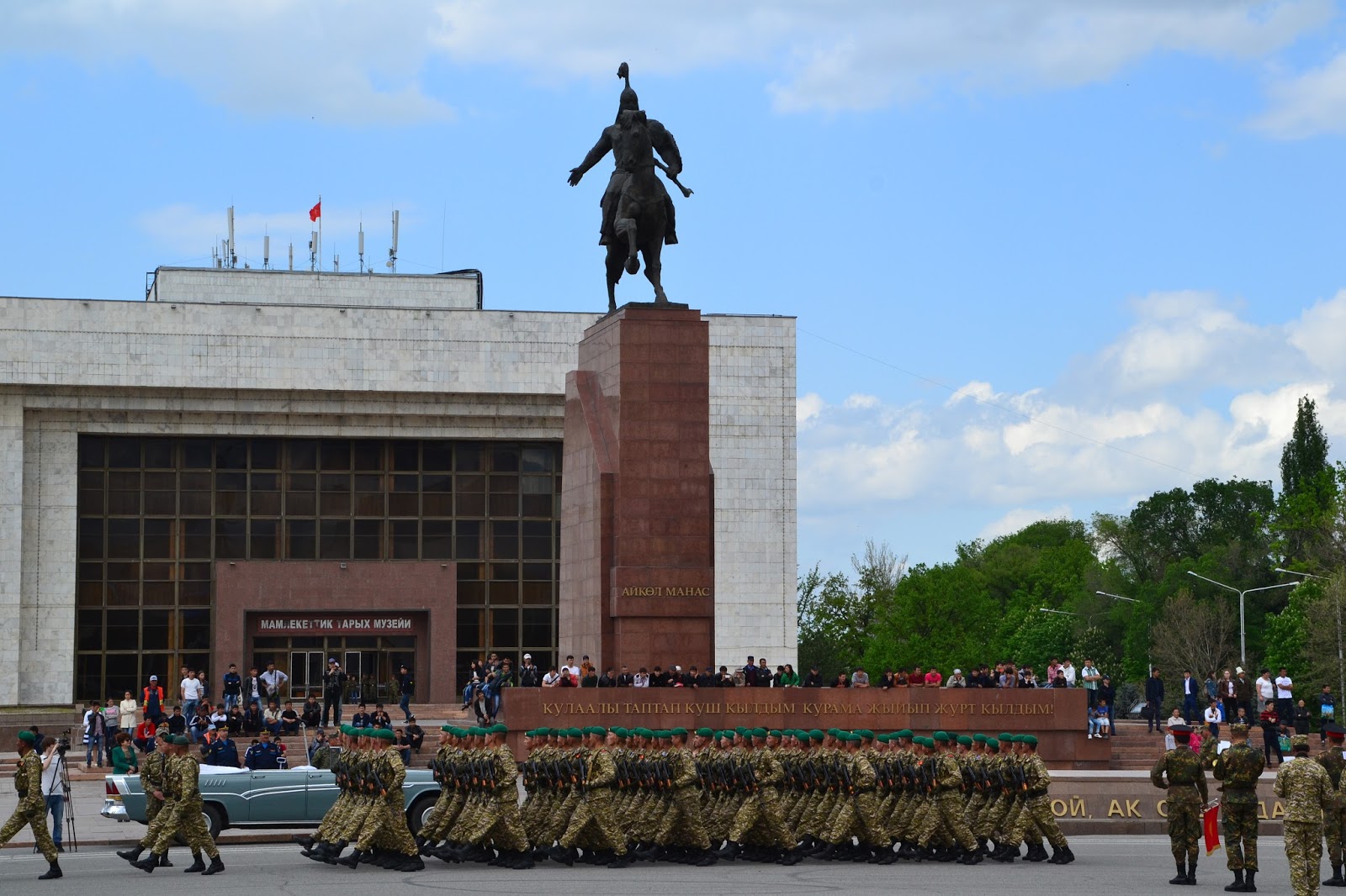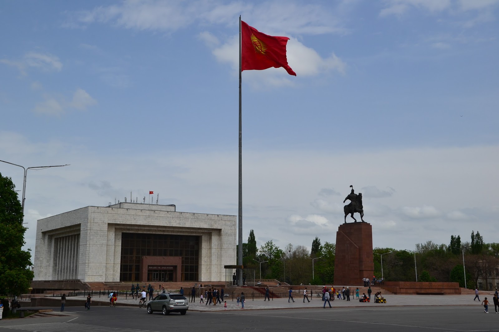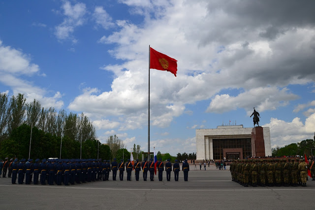 Kirgistan. Ot i jestem. Za plecami granica z Kazachstanem, a przede mną kolejny kraj, 10 kraj byłego ZSRR który odwiedzam i kolejny kraj Azji Centralnej. Na pierwszy ogień mam w planie odwiedzić stolicę, czyli Biszkek, z granicy to około 20 km, a koszt marszutką to 20 som (ok. 1,20zł), początek całkiem, całkiem. Jazda Marszutką trwa około pół godziny, po czym docieramy do centrum miasta, reakcja moja była taka że poszedłem do kierowcy marszutki z pytaniem czy to już na pewno centrum, bo trochę nie dowierzałem w to wielkie nic które zobaczyłem. Pierwszych kilka chwil nie mogłem się odnaleźć, ale po chwili złapałem darmowe, miejskie wi-fi, wow. Udało mi się wyszukać guest house w sensownej cenie, więc miałem pierwszy cel. Idąc oczywiście pieszo przyglądałem się miastu. Było to typowe socjalistyczne miasto, szerokie ulice, monumentalne budynki rządowe, parki, flagi i pozostałości po epoce sowieckiej na każdym kroku, ale miało w sobie coś co mnie urzekło. Ciężko powiedzieć że Biszkek jest ładny, bo ładna to jest Barcelona, ale jednak urzekło mnie w nim coś czego nie jestem w stanie opisać, może to że tętnił życiem, może to że widać było że jest dla ludzi, a może to że wreszcie trafiłem na oznaki wiosny, bo ani w Rosji, ani w Kazachstanie nie było mi to dane.