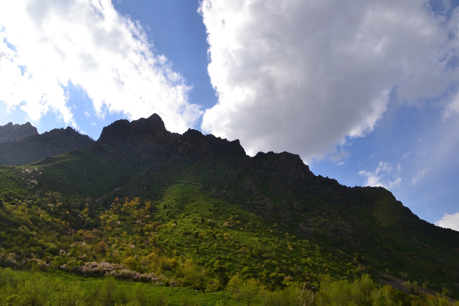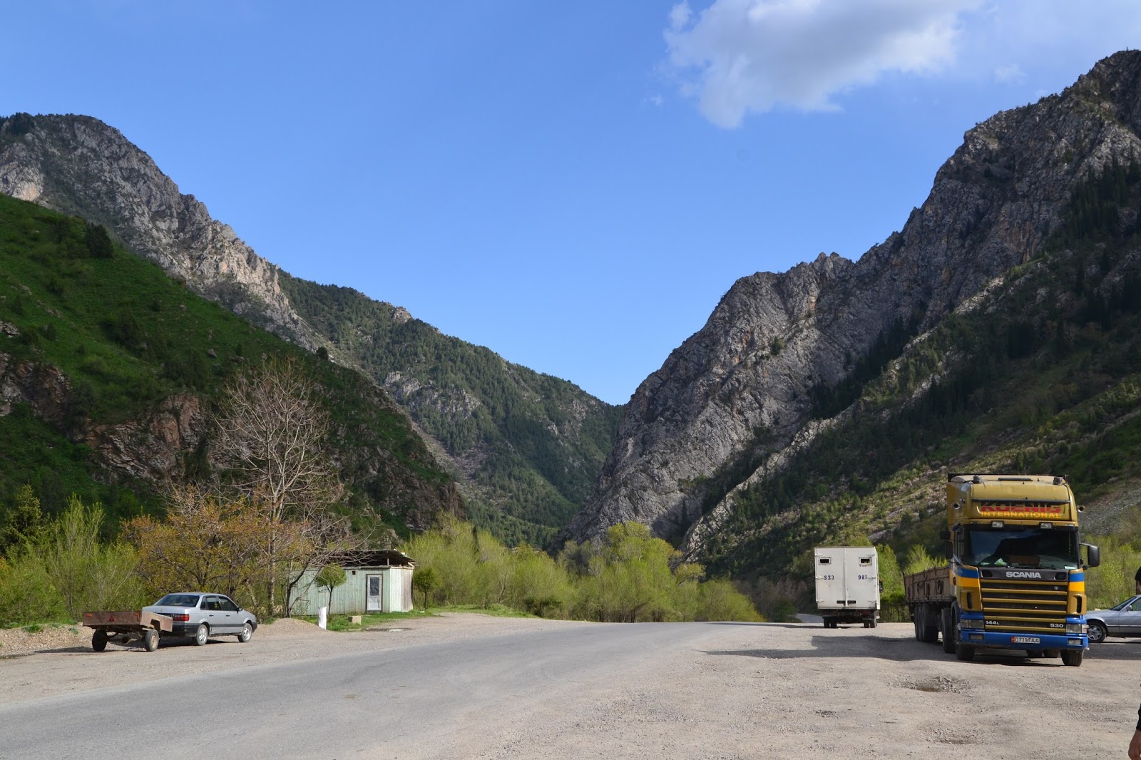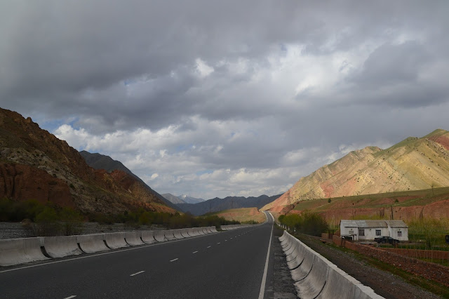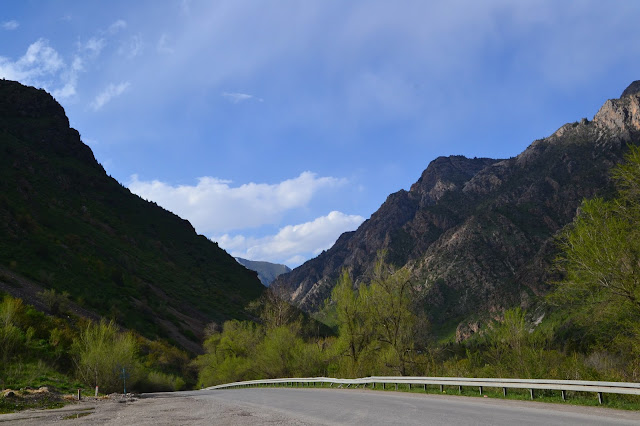 Jazda trwała ponad 10 godzin przez góry, w międzyczasie dwa razy zmieniałem auta, a krajobraz zmieniał się niezliczoną ilość razy. Stwierdzam że chyba nigdy do końca nie zrozumiem logiki działania marszutek i taksówek w krajach ZSRR, bo że załamują one prawa fizyki swoją pojemnością jest powszechnie znane, ale układy, układziki, tematy, temaciki między kierowcami to już jest nie możliwe do ogarnięcia. No cóż najważniejsze jest że dotarłem do celu. Trochę po północy ale na szczęście miałem adres guest house i wiedziałem gdzie się kierować. W planie miałem tylko się umyć i przespać, a rano ruszać dalej bo do Osz jeszcze wrócę. Z tego miasta mam samolot powrotny. Guest house okazał się naprawdę godny polecenia, koszt 7 dolarów, a w cenie śniadanie, wi-fi i centrum miasta, więc spoko.