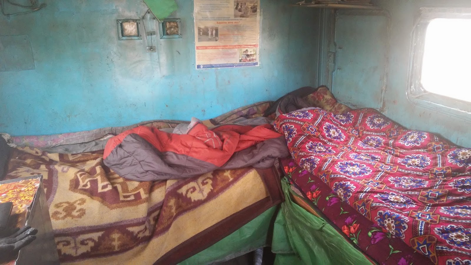 Po drodze okazało się że zabrał mnie dowódca jednostki granicznej, bardzo sympatyczny gość z którym rozmawiałem całą drogę, a interesowało go dosłownie wszystko, od polityki z której na szczęście szybko zrezygnował, bo mieliśmy inne punkty widzenia, po ceny prostytutek w Polsce. Na miejscu szybko stałem się atrakcją dla pograniczników, którzy podchodzili i zagadywali o wszystko, w sumie to tu się nic nie działo więc nie ma się co dziwić. Najgorsze było tylko że nie wiedziałem co mam robić, zostać czy iść dalej pieszo. Na ratunek przyszedł mi dowódca który zapytał czy idę z nimi na kolację, kiedy dowódca mnie zaprosił wszystko było jasne zostaję, a od żołnierzy usłyszałem tylko „o Pioter zachadzicie, zachadzicie…” Zjadłem kolację, dostałem swój kąt do spania, rano śniadanie, a najlepsze było że po tej całej gościnie żołnierze wpakowali mnie w auto jadące do Murgab…
