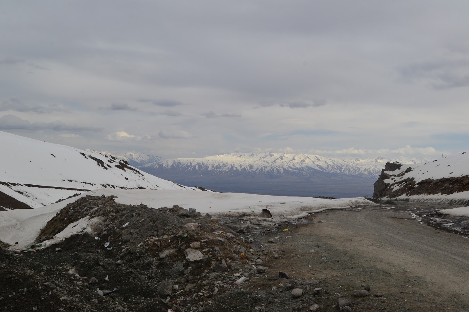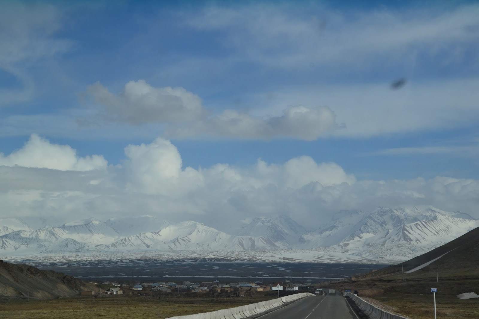 W miejscu z takim widokiem dłubałem słonecznik i czekałem na stopa… gdzieś tam jest Pik Lenina 7134 m n.p.m.