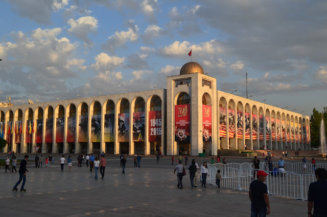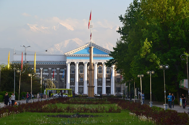 Po powrocie do Biszkeku, okazało się że szczęście mnie nie opuszcza, Ojciec Remigiusz zaproponował żebym na noc zatrzymał się u niego, co było mi bardzo na rękę, bo rano chciałem odebrać paszport z ambasady i od razu ruszać do Osz, drugiego co do wielkości miasta Kirgistanu, skąd potem w Pamir. Wieczór miałem wolny, więc poszedłem na spacer, okazało się że Biszkek w czasie kiedy byłem nad Issyk Kul zmienił się nie do poznania, był jeszcze bardziej zielony, uruchomiono wszystkie fontanny w mieście, a jest ich naprawdę dużo, no i wszędzie widoczne przygotowania do dnia Pobiedy, czyli dnia zwycięstwa który w krajach byłego ZSRR odbywa się 9 maja i jest świętem na zakończenie II wojny światowej, który już za kilka dni, niestety nie będzie mi go dane spędzić w stolicy tylko gdzieś w Pamirze, cóż też będzie dobrze…