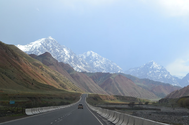 Autostop w Azji Centralnej to zjawisko powszechne, ale niezrozumiałe. Lokalsi często stoją przy drodze łapiąc stopa i tak jeżdżą na bazar, ze wsi do miasta, do następnej wsi itd. ale spróbuj wytłumaczyć że ty podróżujesz na stopa, bo marszutki nie ma, a taksi drogie to zdziwienie będzie olbrzymie. Druga sprawa że autostop w Azji Centralnej jest płatny, w teorii, bo w praktyce to wychodzi pół na pół, czasami chcą kasę ale najczęściej symboliczne kwoty, więc można dać. Trzeba tylko uważać na samozwańczych taksówkarzy naciągaczy, którzy jak w amoku powtarzają tylko „szkolka dasz? Skolka? Skolka?” i tak w kółko, jeden taki tak mnie rozeźlił że do tej pory czuję wstręt na myśl o nim, bo nawet nie chciał mnie dopuścić do słowa tylko w perfidny sposób mi przerywał mówiąc tylko „skolka”. Ja do granicy dotarłem za 50 som (3zł), tylko jeden kierowca chciał pieniądze bo trochę dalej podjechał żeby mnie wysadzić w lepszym miejscu i zapytał wcześniej czy mi taki układ pasuje, czyli uczciwie. Łącznie pięcioma autami dotarłem do rozstaju dróg za miastem Sari Tasz, 40 km od granicy, a po drodze byłem zaproszony na obiad i herbatę.