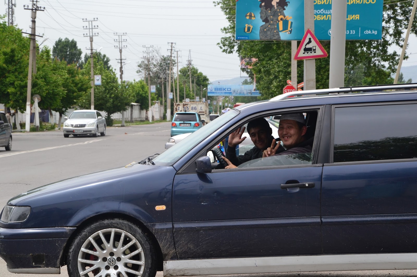 Jako że ruch na drodze był mały, a pora jeszcze nie późna postanowiłem iść do miasta pieszo, a jak coś będzie jechało to łapać stopa. Okazja napatoczyła się sama, bo ledwo zrobiłem kilka kroków zatrzymał się bus, którego nawet nie próbowałem łapać, bo jechała nim Tadżycka rodzinka, a tacy to raczej autostopowiczów nie biorą. Jednak Azja Centralna to nie Europa i okazało się że mnie wzięli, mało tego okazało się że jadą do Kazachstanu na wakacje i będę jechać przez Osz, więc passa się odwróciła i miałem transport zapewniony aż do Osz. Rodzinka była dość dziwna i ich zachowanie również mnie dziwiło, a najbardziej nie mogłem zrozumieć dlaczego Ojciec, czyli głowa rodziny cały czas mówi do mnie po Angielsku, mimo że poinformowałem go że spokojnie może mówić po Rosyjsku. W sumie nie dziwił bym się gdyby lepiej znał Angielski niż Rosyjski, ale niestety Angielskiego nie znał. Rozbawił mnie stwierdzeniem że jego dzieci są głodne, kiedy widać było że chodzi mu o to że dzieci już zasypiają ze zmęczenia. Może chciał się popisać znajomością języka? 😉