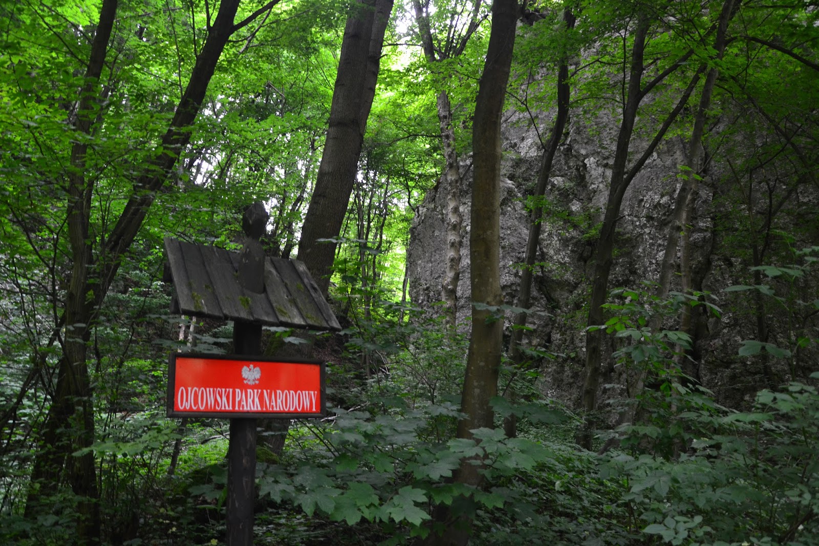 Po niedługim marszu dochodzimy do granic Ojcowskiego Parku Narodowego, informują nas o tym tablice z których dowiemy się co nam wolno, a czego nie wolno na terenie OPN. Krajobraz się zmienia niesamowicie i nawet bez setki tablic informacyjnych, zaczynamy widzieć że coś się w naszym otoczeniu zmienia. OPN to zdecydowanie jedno z najpiękniejszych miejsc na trasie Szlaku Orlich Gniazd. Piękne, zielone, pełne ciszy i spokoju miejsce, które na mnie wywarło ogromne wrażenie, nawet nie zdawałem sobie sprawy że w odległości kilkunastu kilometrów od Krakowa znajduje się taka enklawa spokoju. Zresztą zobaczcie sami.