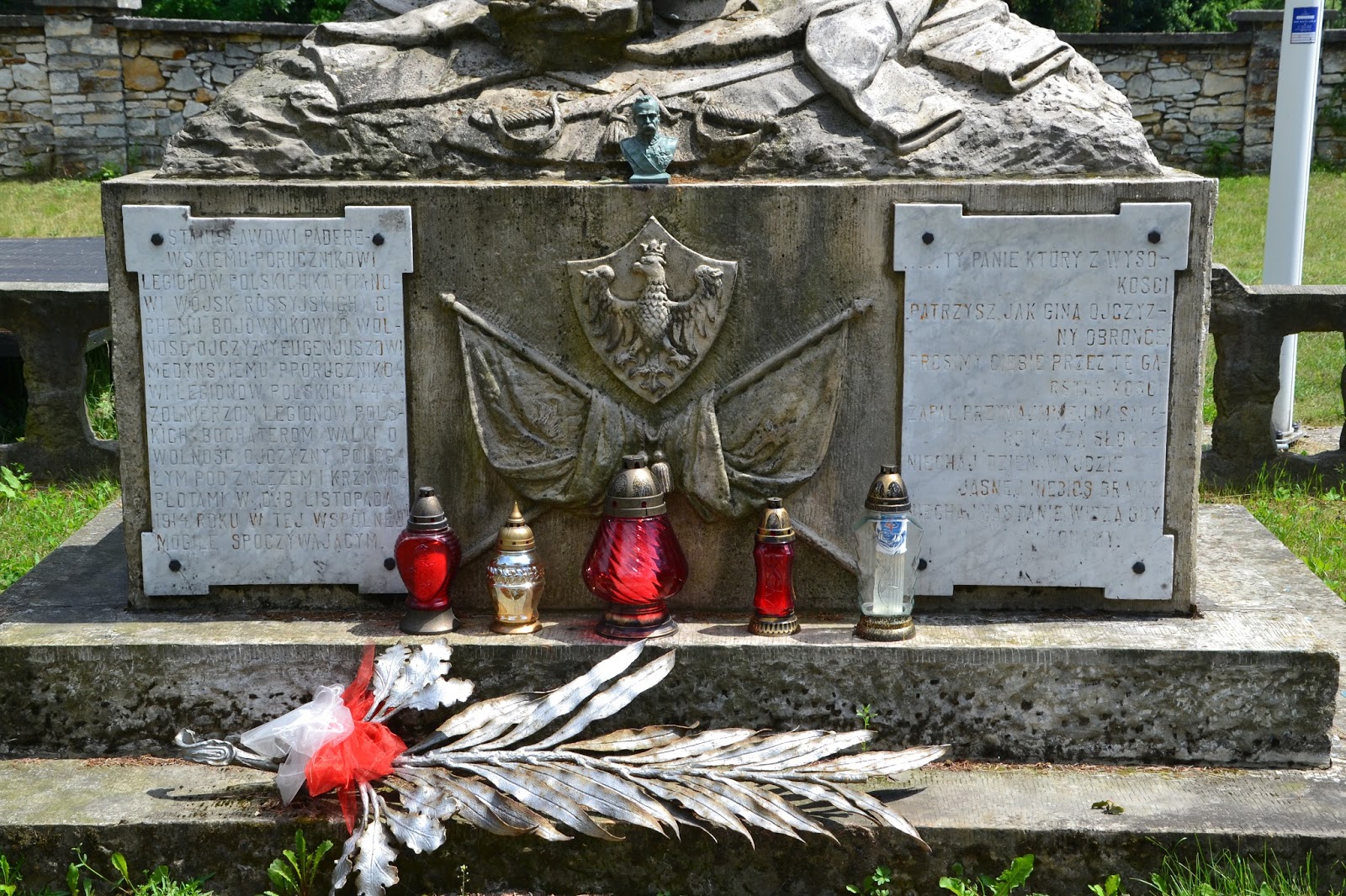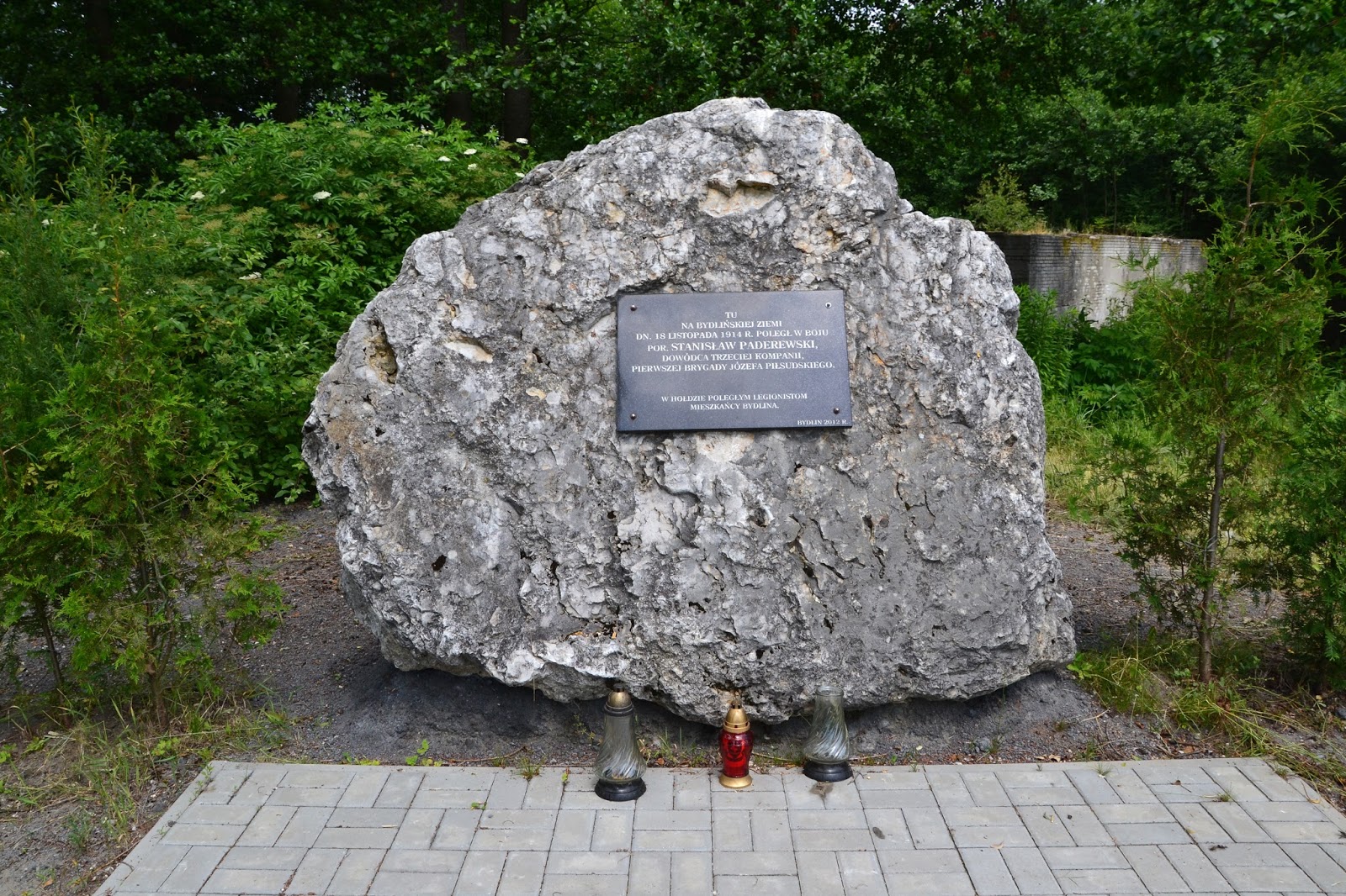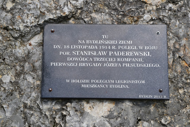 Kawałek dalej idąc szlakiem natkniemy się na kamienny obelisk, z tablicą pamiątkową, upamiętniającą śmierć por. Stanisława Paderewskiego, dowódcy trzeciej kompanii pierwszej brygady Józefa Piłsudskiego, warto wspomnieć że był on również bratem przyrodnim Ignacego Paderewskiego.