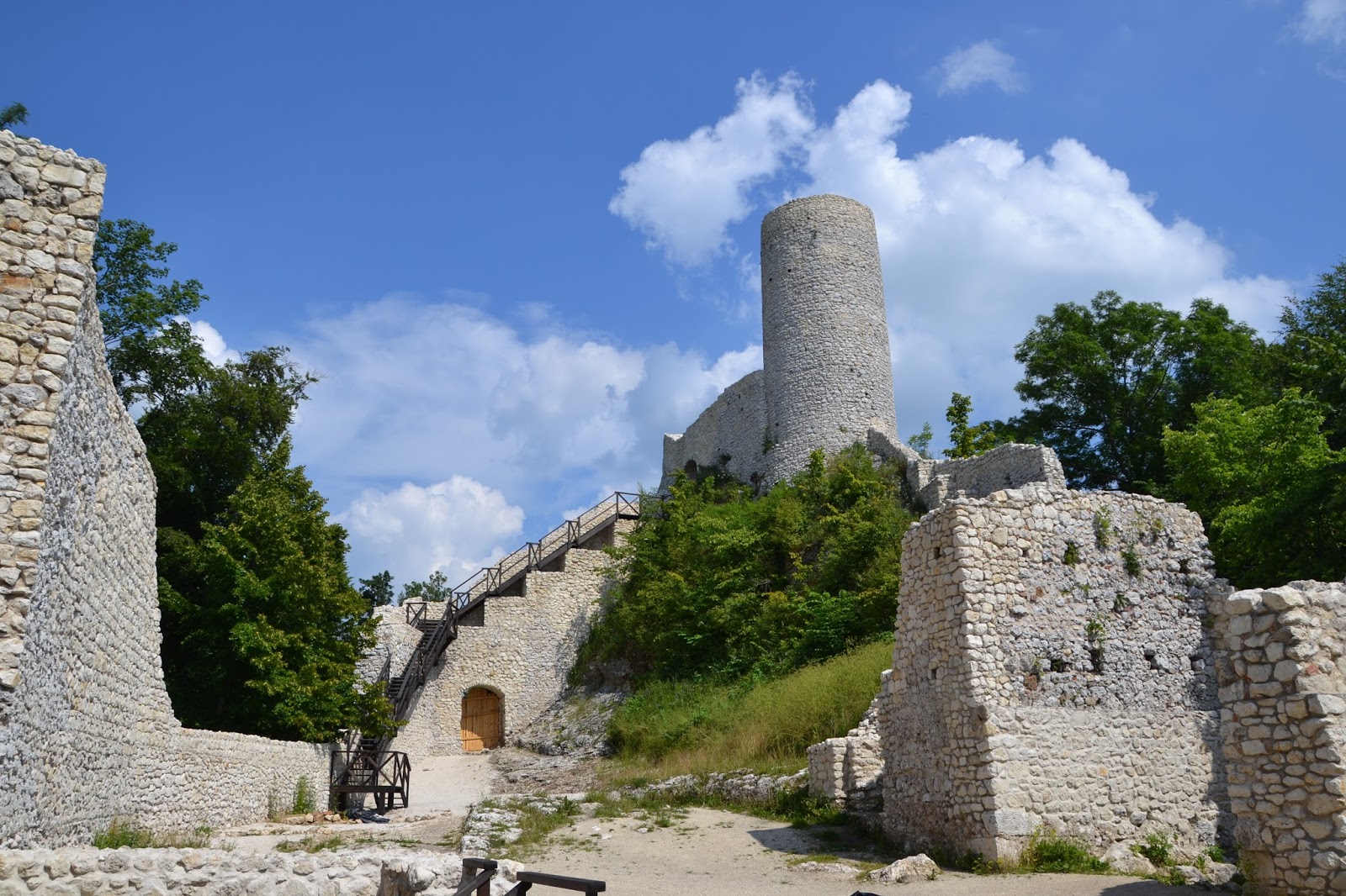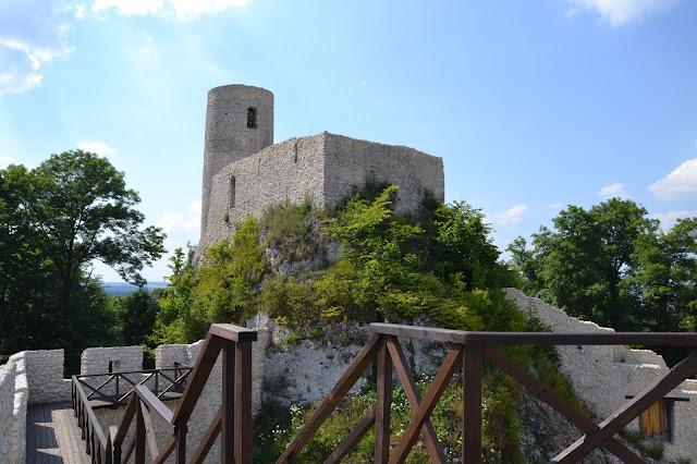 Zamek Smoleń** to kolejne ruiny które napotkamy tego dnia. W momencie kiedy ja odwiedzałem to miejsce obowiązywał zakaz wchodzenia do ruin z powodu prowadzonych tam prac (01.07.15). Dlatego wchodzi się na własne ryzyko, które ja oczywiście podjąłem i powiem szczerze że było warto. Zamek został wzniesiony w XIII w., zdobyty i zniszczony przez Szwedów w czasie potopu. Na moje oko prace remontowe zostały zakończone, a same ruiny są zabezpieczone i świetnie przygotowane do zwiedzania. Największe wrażenie robi górująca nad okolicą okrągła, kamienna wieża, na którą można wejść i podziwiać sporą część Jury. Zamek Smoleń to pierwszy zamek na naszej trasie w województwie Śląskim.
