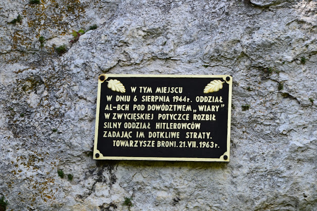 Kolejny fragment szlaku prowadzi nas tym razem przez piękne lasy liściaste, które w upalne dni dają schronienie i przyjemny chłód. Idąc szlakiem natrafiamy w końcu na polanę, przy której stoi kamienny obelisk z tabliczką i tablica informacyjna z których dowiemy się że w tej okolicy stacjonował partyzancki oddział „Surowiec”, a jedne z jego ważniejszych akcji to min. atak na posterunek Wehrmachtu na Pustyni Błędowskiej, atak na koszary niemieckie w Jaroszowcu czy atak na magazyn broni w Kluczach.