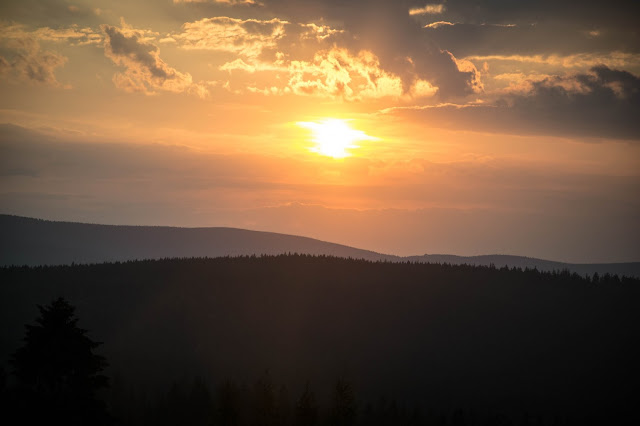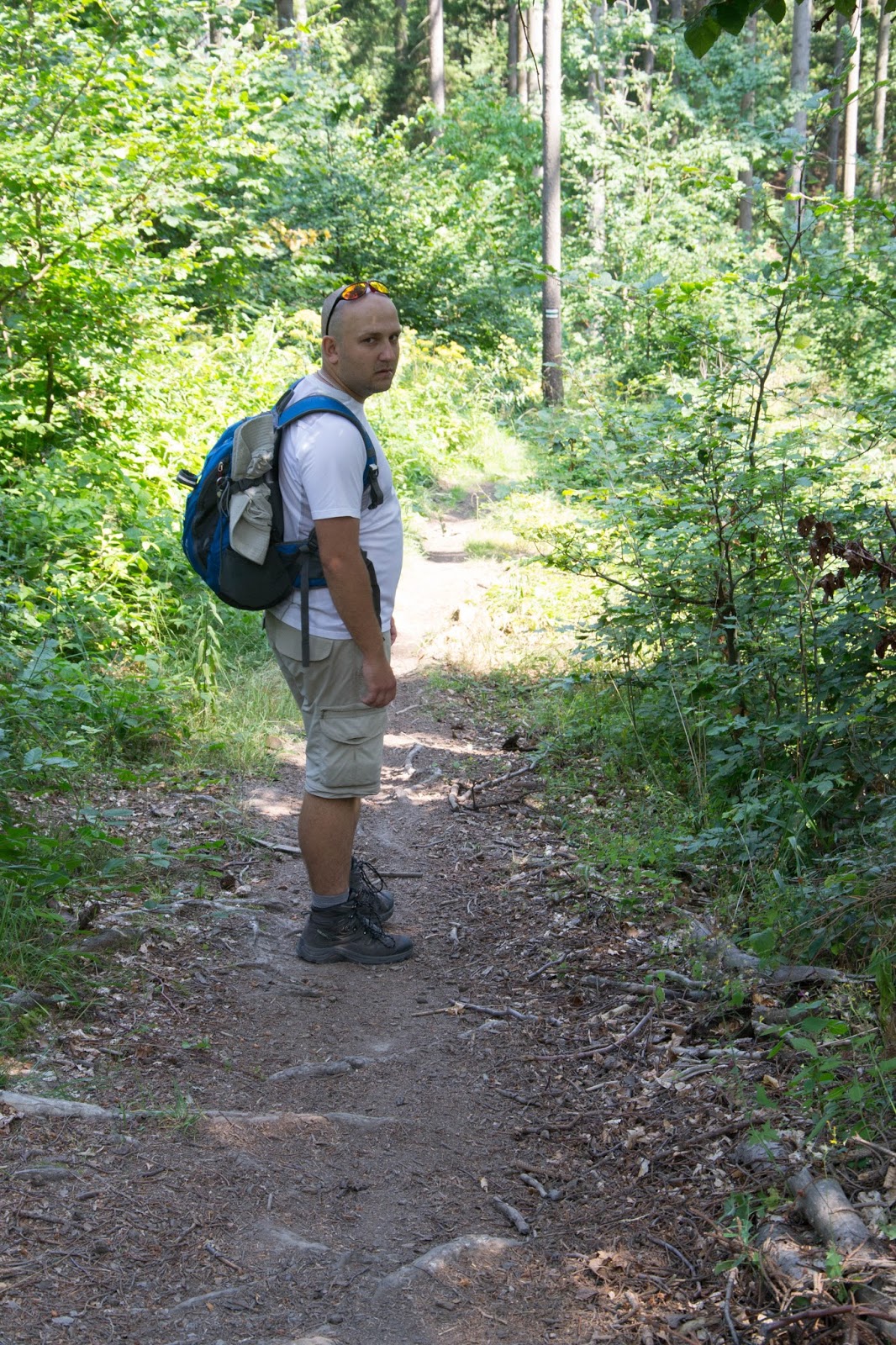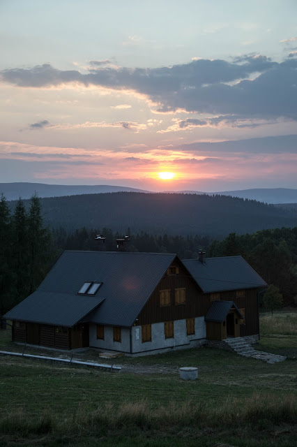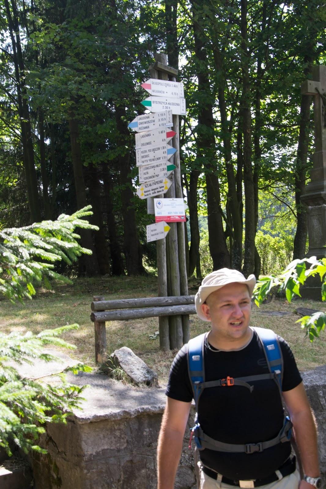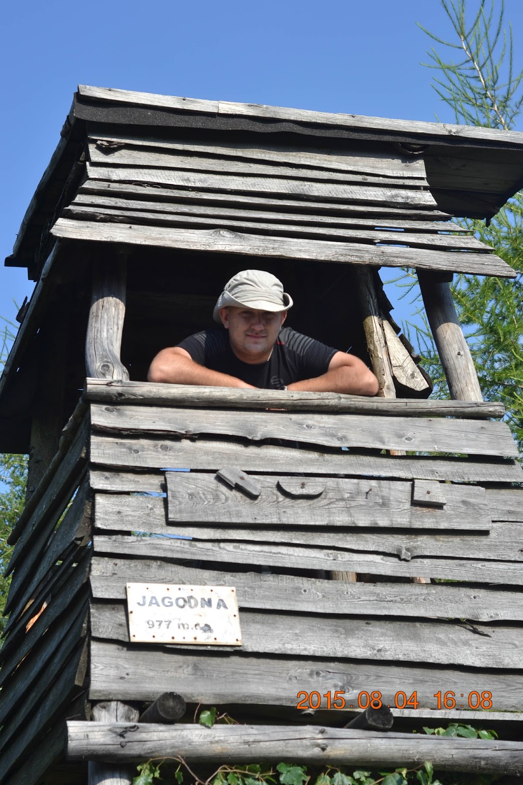 Pociągiem z Wrocławia dojechaliśmy do miejscowości Długopole Zdrój skąd ruszyliśmy czerwonym (Głównym Sudeckim) szlakiem, do schroniska Jagodna, znajdującego się u podnóży góry o tej samej nazwie. Schronisko okazało się bardzo przyjemne, standard typowo schroniskowy ale klimat bardzo fajny. Tam mieliśmy zarezerwowany nocleg, w pokoju zostawiliśmy więc część bagażu i poszliśmy wzmocnić się zimnym piwkiem, ponieważ dzień był wyjątkowo upalny. Później ruszyliśmy szlakiem niebieskim na szczyt. Najwyższy punkt Jagodnej nas zaskoczył, bo pojawił się całkiem nie spodziewanie, w zasadzie gdyby nie tabliczka na ambonie to można by przejść obok nawet nie wiedząc że było się na szczycie. Po sesji zdjęciowej ze zdobycia kolejnego dla mnie szczytu KGP, wróciliśmy do schroniska na obiado-kolację.