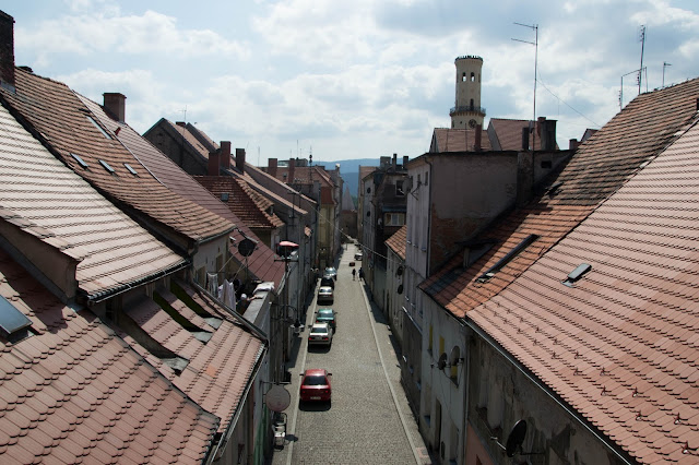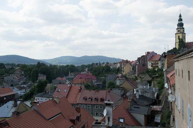 Następnego dnia wstaliśmy, zjedliśmy śniadanie i szlakiem zielonym ruszyliśmy do Bystrzycy Kłodzkiej. Szlak szedł bardzo spokojnie i po niedługim marszu dotarliśmy zabytkowego miasta. Na zwiedzanie miasta mieliśmy kilka godzin, ale w zupełności nam to wystarczyło. Miasto jest usytuowane w malowniczej południowej części Kotliny Kłodzkiej, między pasmem Gór Bystrzyckich a Masywem Śnieżnika, nad brzegiem Nysy Kłodzkiej. Warto odwiedzić tutaj oczywiście rynek z usadowionym na samym środku ratuszem i świetnie zachowane baszty strażnicze Baszta Wodna i Rycerska są udostępnione bezpłatnie do zwiedzania, a Baszta Kłodzka jedyna płatna to wydatek rzędu 3 złotych. Pochodzą one z początku XIV w. a rozpościera się z nich piękny widok na miasto i na pobliskie góry.