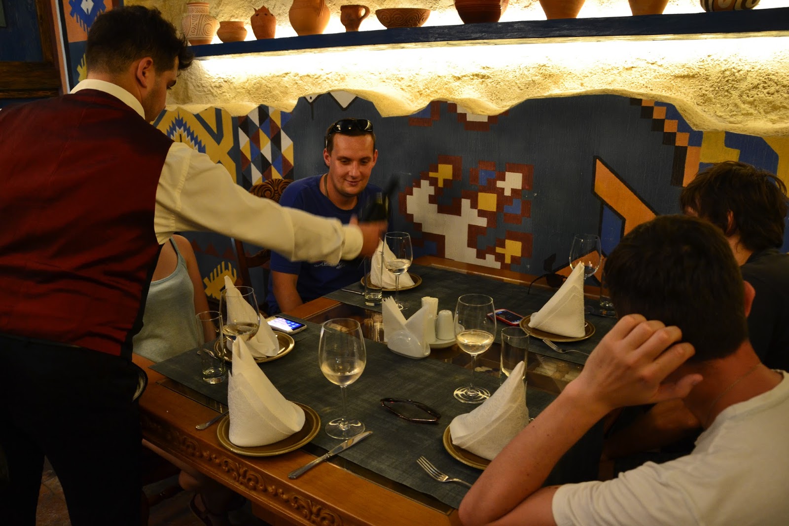 Warto jednak wiedzieć że organizowanie wycieczki po samej winnicy nie jest takie proste, trzeba ją zarezerwować ale co najmniej z kilkudniowym wyprzedzeniem. Kolejną ważną informacją jest że trzeba posiadać własne auto, lub dołączyć się do większej grupy co nie zawsze jest możliwe, bo piwniczki są tak rozległe że zwiedza się je tylko będąc zmotoryzowanym. Z tych powodów nam się nie udało zwiedzić tego miejsca, choć napotkani Rosjanie proponowali nam że nas wezmą do auta, niestety mieli tylko dwa miejsca a nas było 5 osób. Na szczęście udało nam się skorzystać z innej atrakcji, która też okazała się super, a była to degustacja win z tej właśnie winnicy. Koszt takiej degustacji to 200 Lei (20zł) od osoby, a osób musi być min. 5. W cenie mieliśmy 4 różne butelki wina, poczęstunek, wspaniały lokal oraz Pana sommeliera który nas obsługiwał i opowiadał nam o winach które mieliśmy okazję kosztować.