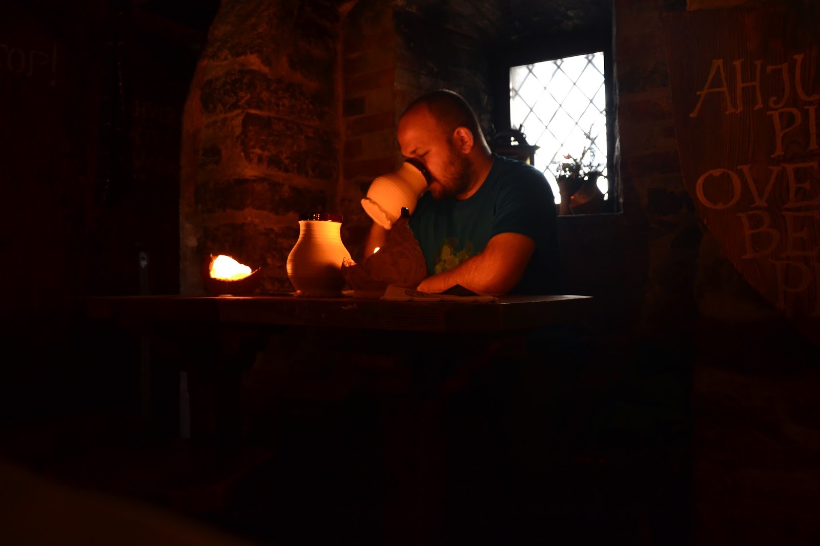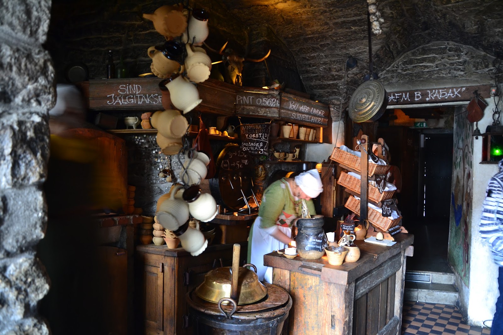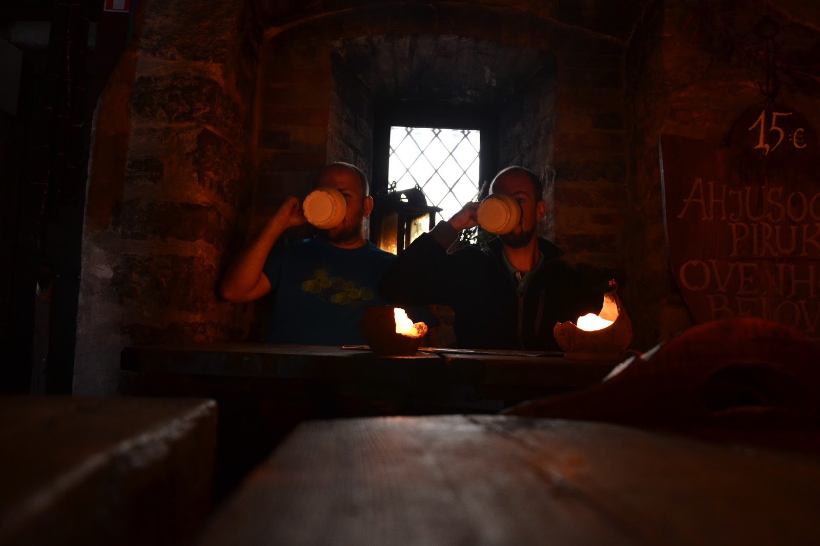 Jednym chyba z bardziej genialnych miejsc w Tallinie jest karczma znajdująca się pod ratuszem, o ile nie jestem fanem odwiedzania knajp dla turystów, to tam z miłą chęcią zapłaciłem 7 euro za piwo (siki jak nic), ale klimat zacni czytelnicy był nie do opisania. Karczma jak wyciągnięta z wiedźmina, oświetlenie w postaci świec, wszystko w drewnie, a i jadło zacne… w zasadzie może wybór nie powalał, ale powiem znowu… klimat… Do jedzenia serwowano zupę jakiś bulion warzywny z mięskiem na łyżkę nie ma co liczyć, bo przecież gdzie rycerz by jadł łyżką, kiełbaski na ciepło, paszteciki z dziczyzną, suszone mięso łosia i ogórki kiszone. Wszystko bardzo smaczne.