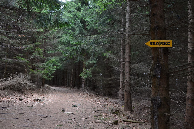 Najkrótsza możliwa trasa prowadzi niebieskim szlakiem od Komarna gdzie można zaparkować auto i w 15 minut dostać się na szczyt, przynajmniej tak twierdziła para którą spotkaliśmy na górze. My jednak woleliśmy trasę dłuższą, bo jaka jest satysfakcja z wejścia w 15 minut na szczyt? Samochodem dojechaliśmy do Wojcieszowa, skąd szlakiem żółtym można w trochę ponad godzinę dostać się na Skopiec. Trasa jest mało wymagająca i bardzo przyjemna, w sam raz na rozruch po dłuższej przerwie od gór. Jednak można oko nacieszyć widokami.