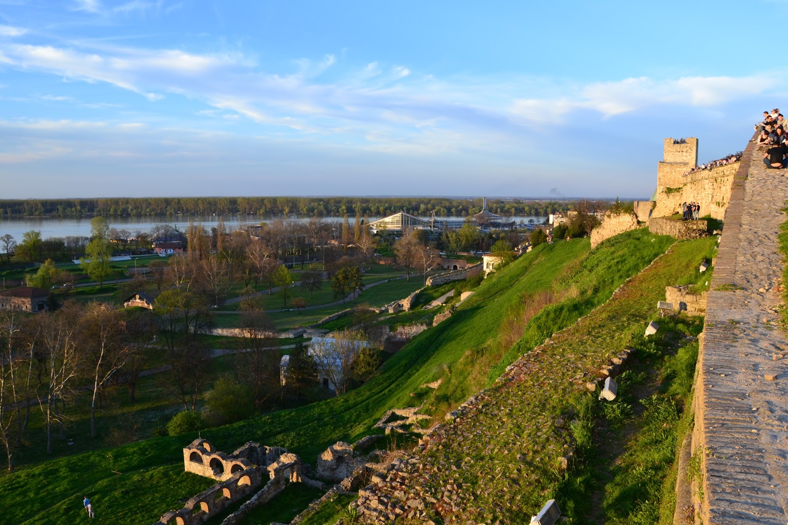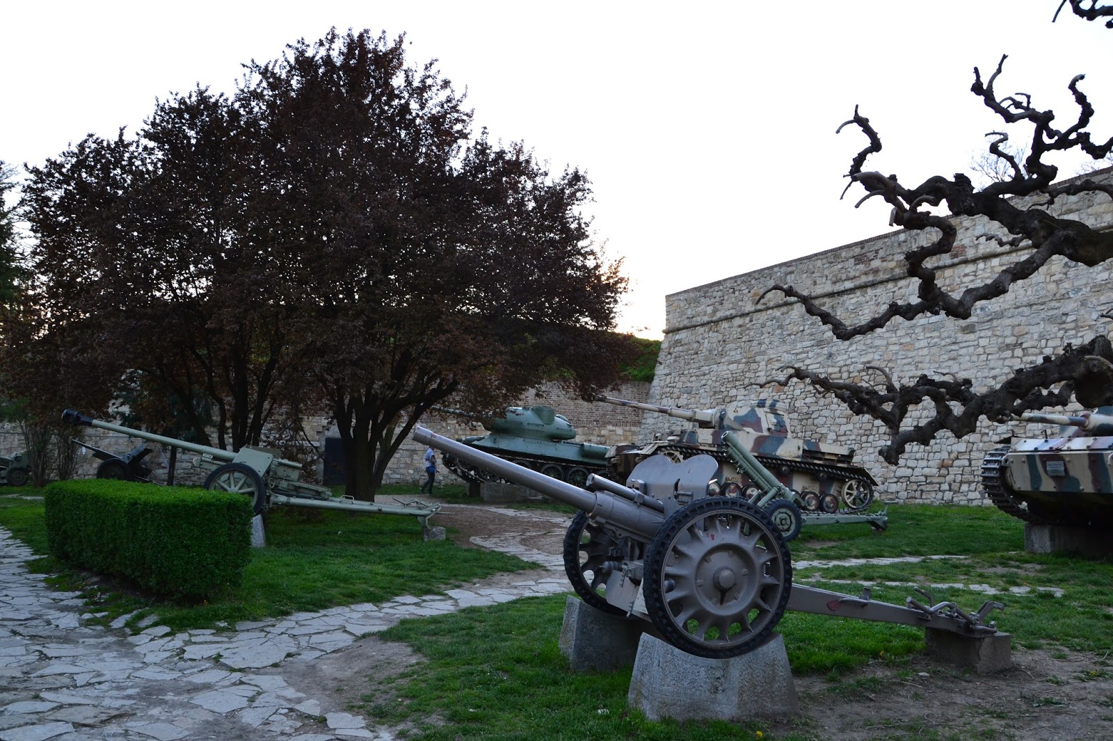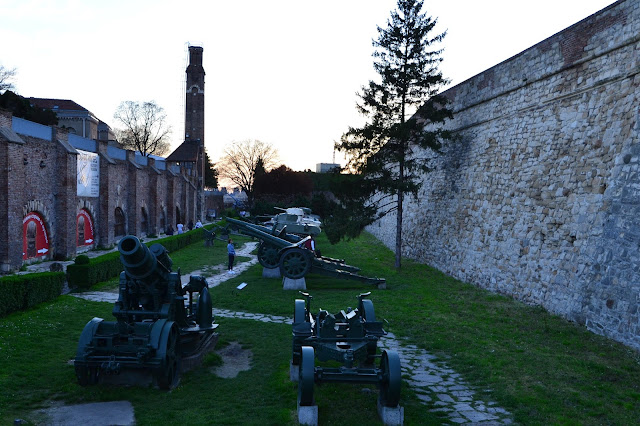 Kiedy popołudniu dołączył do mnie Sądecki Włóczykij postanowiliśmy odwiedzić Zamek Kalemegdan, który w latach świetności musiał być fortecą nie do zdobycia. Znajduje się on na wzgórzu co w budowie zamków nie jest niczym nadzwyczajnym, ale ten znajduje się w miejscu gdzie potężna rzeka Sawa wpada do jeszcze potężniejszego Dunaju, a to już robi ogromne wrażenie. Zamek co prawda zachował się raczej jako ruiny ale nadal widać w nim potęgę. Kalemegdan wygląda świetnie, ale i widoki z samego zamku są naprawdę bajeczne, szczególnie w nocy, ale te drugie zaprezentuję dalszej częsci posta. Warto wspomnieć że w samej fortecy znajduje się również sporo eksponatów militarnych i muzeum, dużą część można zwiedzać za darmo.