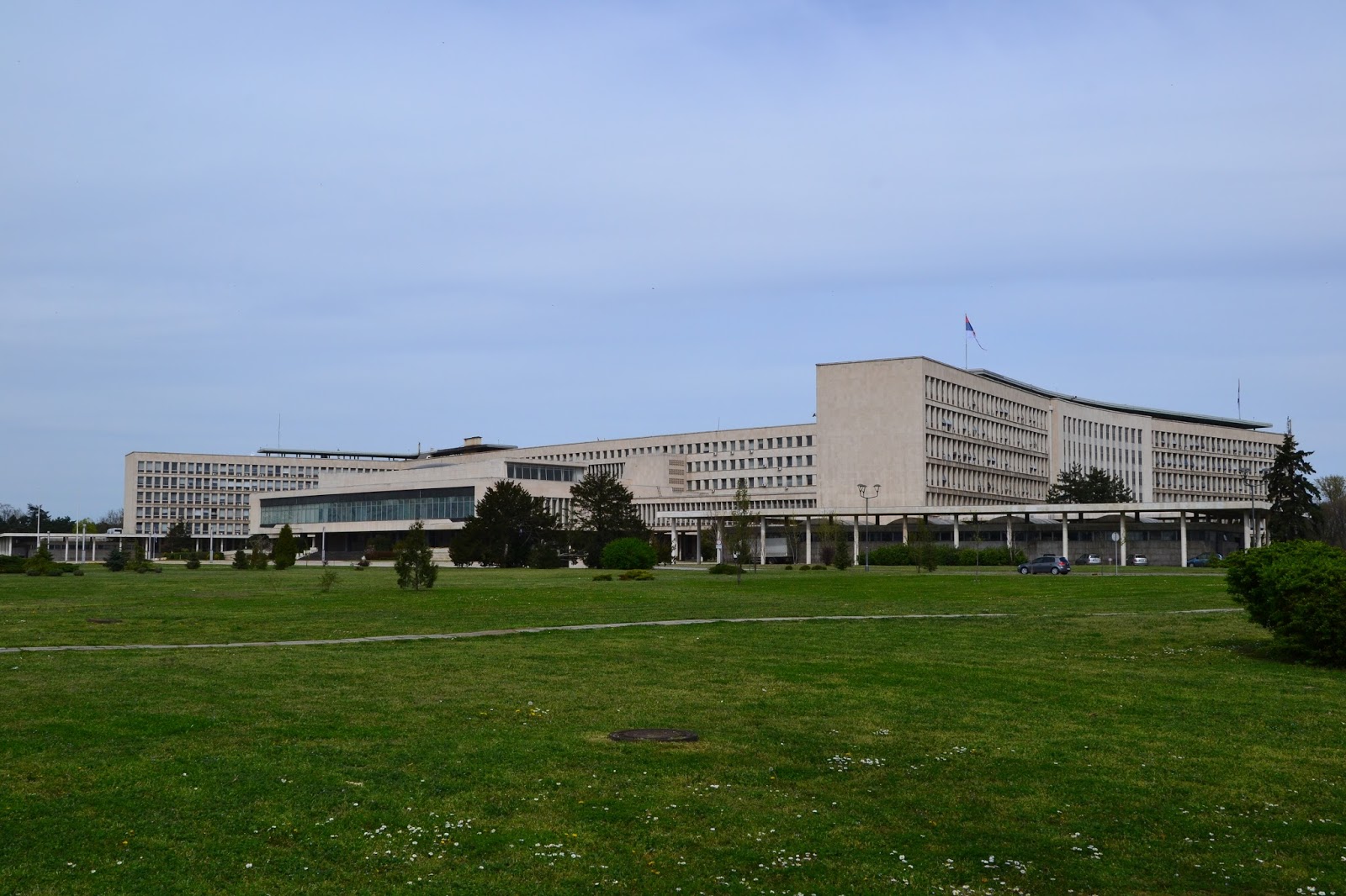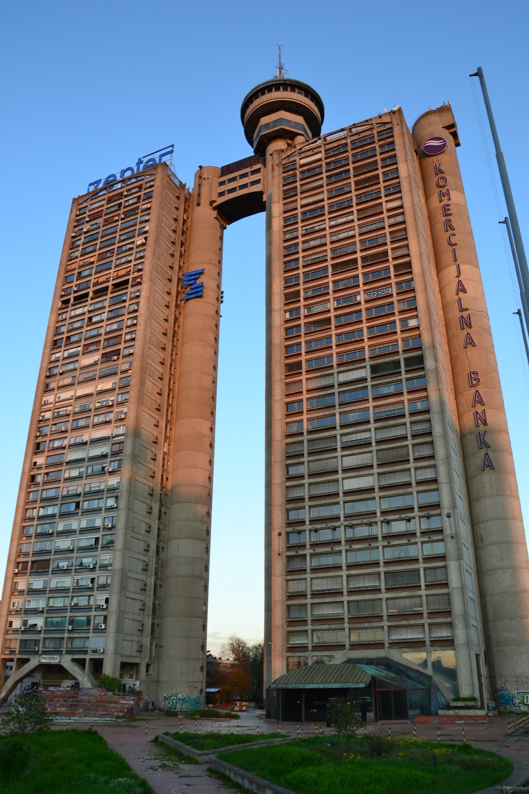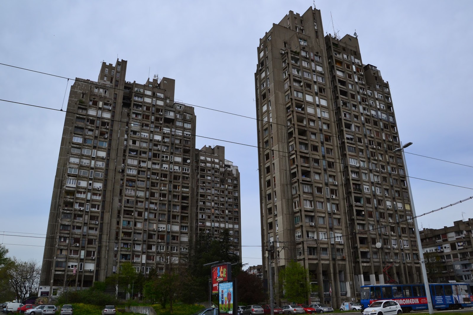 Właściwie do wieczora już zszedł nam czas na wzgórzu zamkowym. Następnego dnia rano dołączył do nas Szymon. Teraz wspólnie mogliśmy zwiedzać miasto. Na pierwszy rzut tego dnia poszedł Nowy Belgrad. Można by powiedzieć że jest to najmniej ciekawa część miasta, pewnie jest w tym sporo racji, ale jeśli ktoś tak jak ja lubi brutalizm, blokowiska i szarość życia codziennego odnajdzie tam sporo do oglądania. My spacerowaliśmy po tej części miasta i podziwialiśmy perły brutalizmu.
