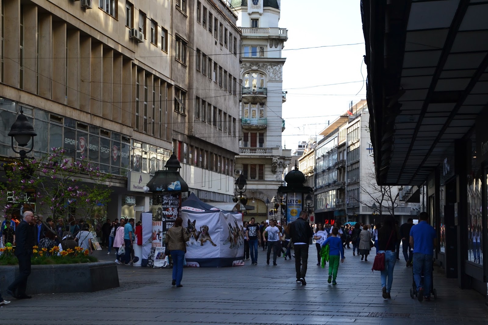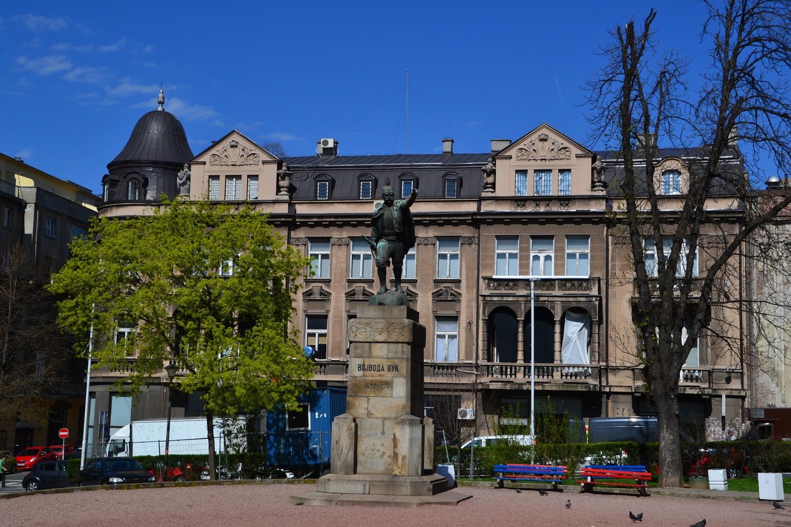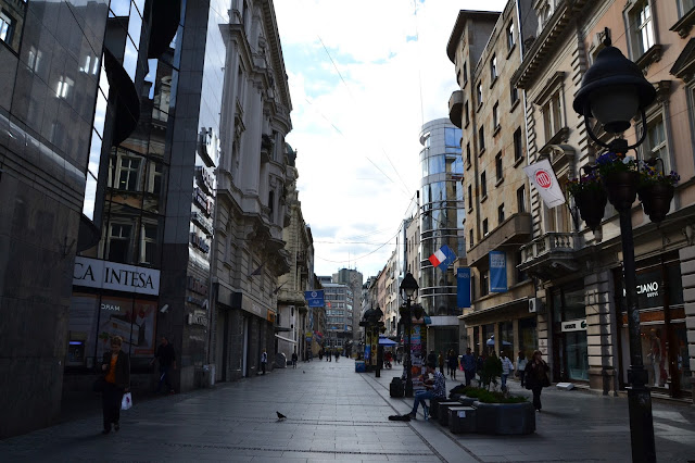 Wstałem jak na mnie bardzo wcześnie, a chwilę po siódmej byłem już gotowy do wyjścia. Nie wiedziałem o której mam się spodziewać chłopaków, wiedziałem tylko że o 14 mam odebrać klucze do naszego mieszkania. Dlatego poranek postanowiłem wykorzystać leniwie, nie nadwyrężając się nadmiernym chodzeniem z plecakiem. Pierwsze kroki skierowałem na ulicę Kniazia Michała, jest to reprezentacyjna ulica Belgradu, całkowicie wyłączona z ruchu aut. Otoczona pięknymi, zabytkowymi kamienicami z tysiącem kawiarenek, knajpek i pubów. Jako że było jeszcze wcześnie rano, można było spotkać tylko krzątających się po ogródkach kawiarnianych kelnerów szykujących się do otwarcia. Muszę przyznać że chyba był to najlepszy moment na spacer tą ulicą bo potem jeszcze kilkukrotnie byłem w jej okolicy ale tłumy ludzi i wszechobecny gwar nie pozwalały się skupić na jej uroku. Właściwie to do momentu odbioru kluczy, moje zwiedzanie zamykało się w kawiarniach w których wypiłem morze kaw na przemian z wodą mineralną.