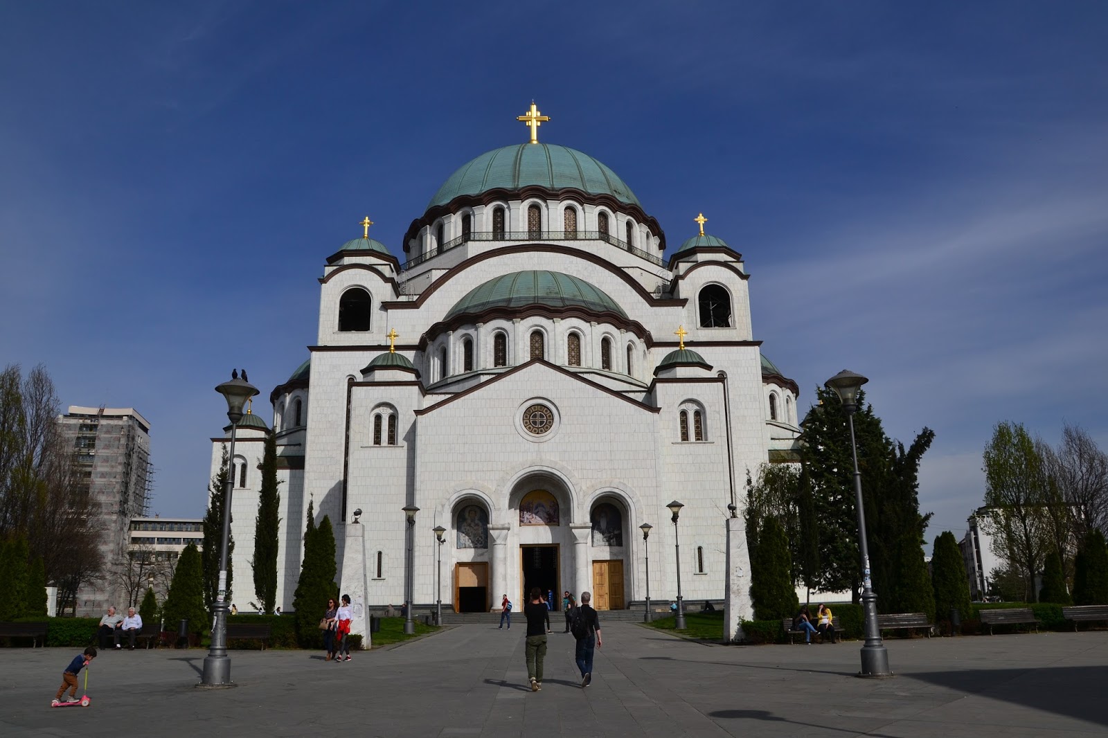 Warto wstąpić też do największej Belgradzkiej cerkwi która zdecydowanie góruje nad miastem. Jest to sobór św. Sawy. Mimo że z zewnątrz wygląda na ukończoną i to dość dawno, w środku straszą szare ściany i rusztowania, co świadczy że jest ona w budowie. Nie przeszkadza to wiernym którzy przychodzą tłumnie modlić się w tym miejscu.