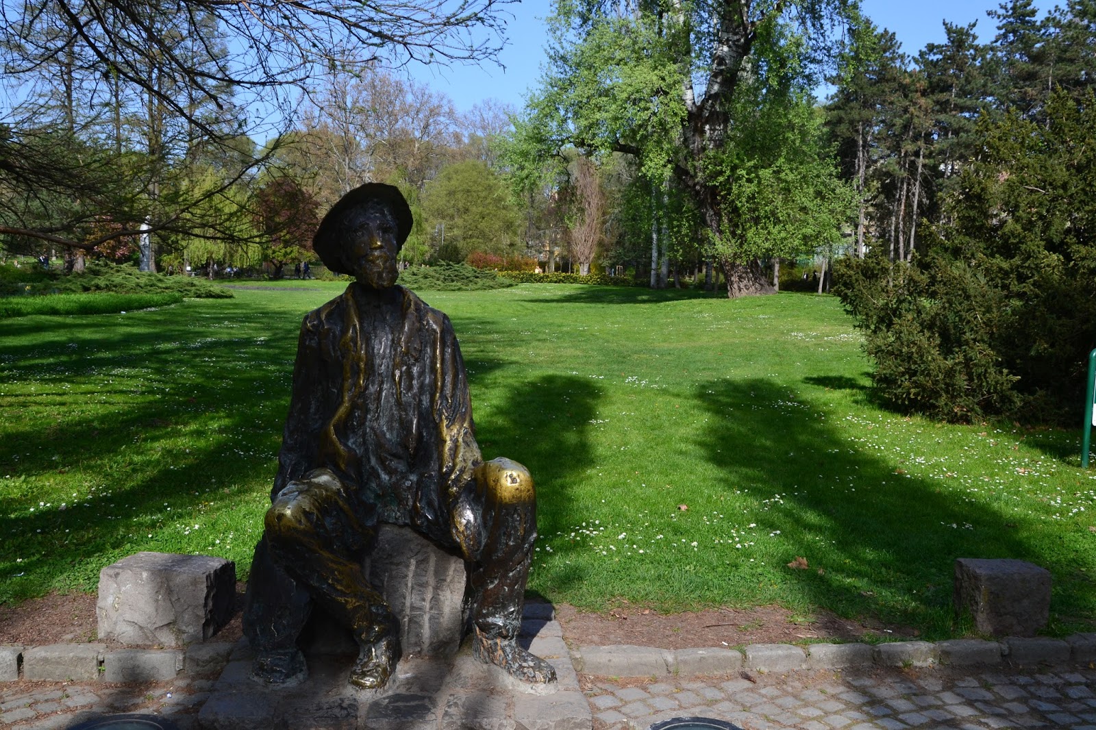 Przy dworcu żegna nas pomnik kolejarza i jego lokomotywa.
