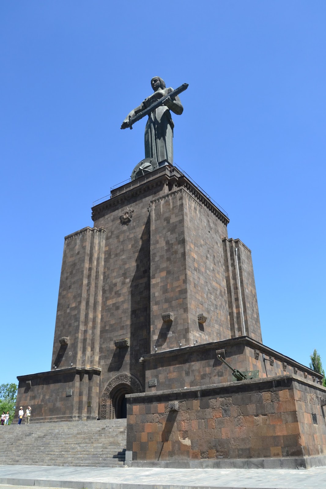 | Pomnik Matki Armenii, a w środku muzeum wojenne. |